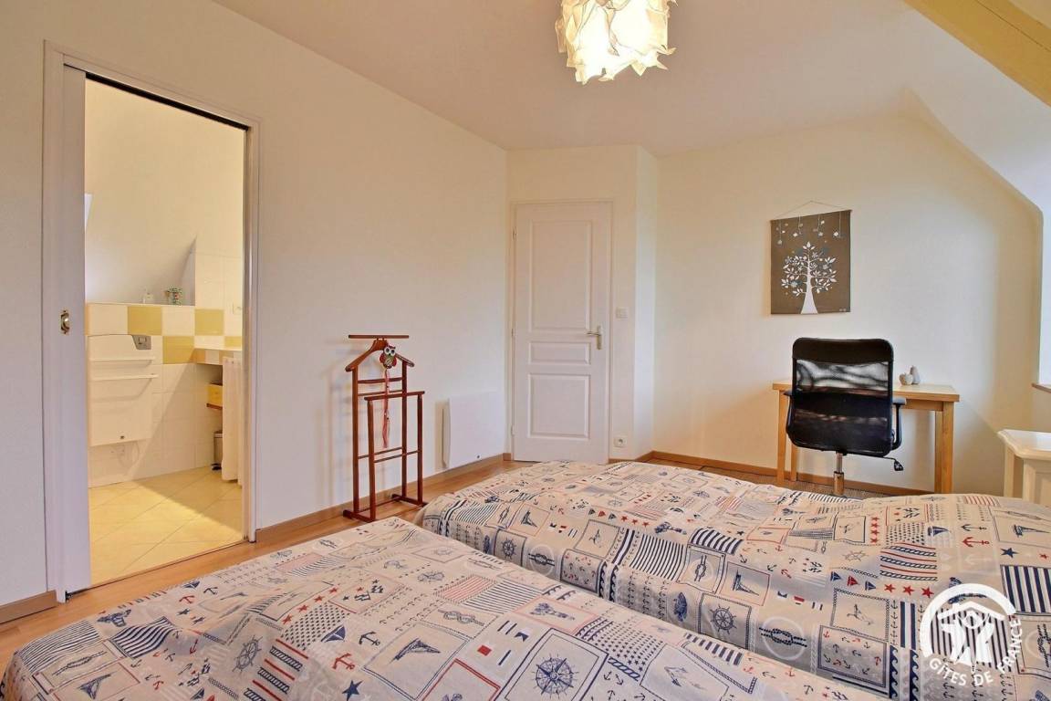 Im Obergeschoss finden Sie ein Schlafzimmer mit einem 140x190-Bett und einem eigenen Badezimmer, ein Schlafzimmer mit zwei 90x190-Betten und einem eigenen Badezimmer sowie eine separate Toilette. Auf dem Treppenabsatz ist eine Leseecke eingerichtet. WLAN nur im Wohnzimmer zugänglich. Draußen genießen Sie eine Terrasse mit Tisch und Stühlen, Grill, Liegestühlen und einen Garten. Die Besitzer haben zwei Räume eingerichtet, um Ihnen die Möglichkeit zu geben, im Garten zu arbeiten oder saisonales Gemüse und aromatische Pflanzen zu ernten. Auf dem Privatparkplatz können Sie bis zu 2 Fahrzeuge abstellen. Gîte neben dem Haus der Eigentümer. Verpflichtung, zertifiziertes Holz für den Ofen zu verwenden. Die Besitzer können Ihnen einen Sack Holz für 8€ zur Verfügung stellen.
