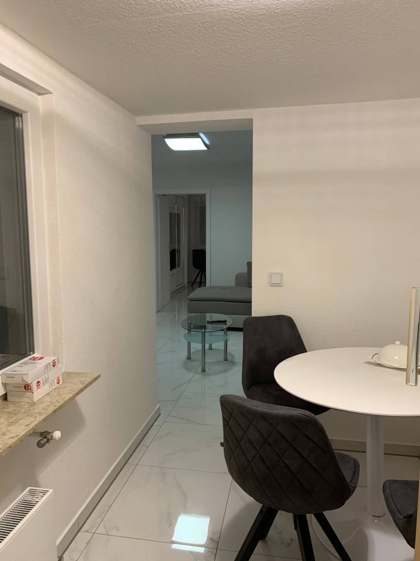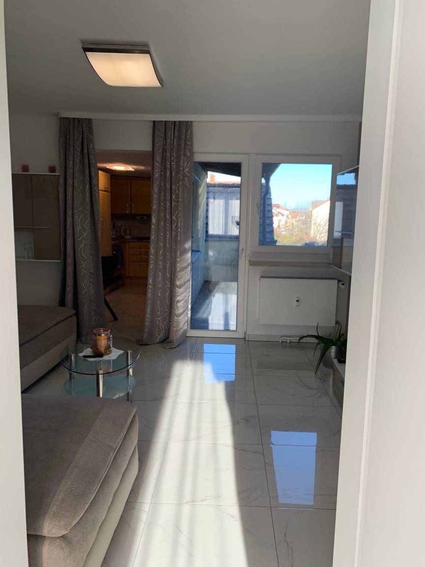 Sie besteht aus 2 Zimmer, einer komplett eingerichteten Küche und Bad, wie einem kleinen Balkon auf dem man auch rauchen kann (daher auch für Raucher geeignet).