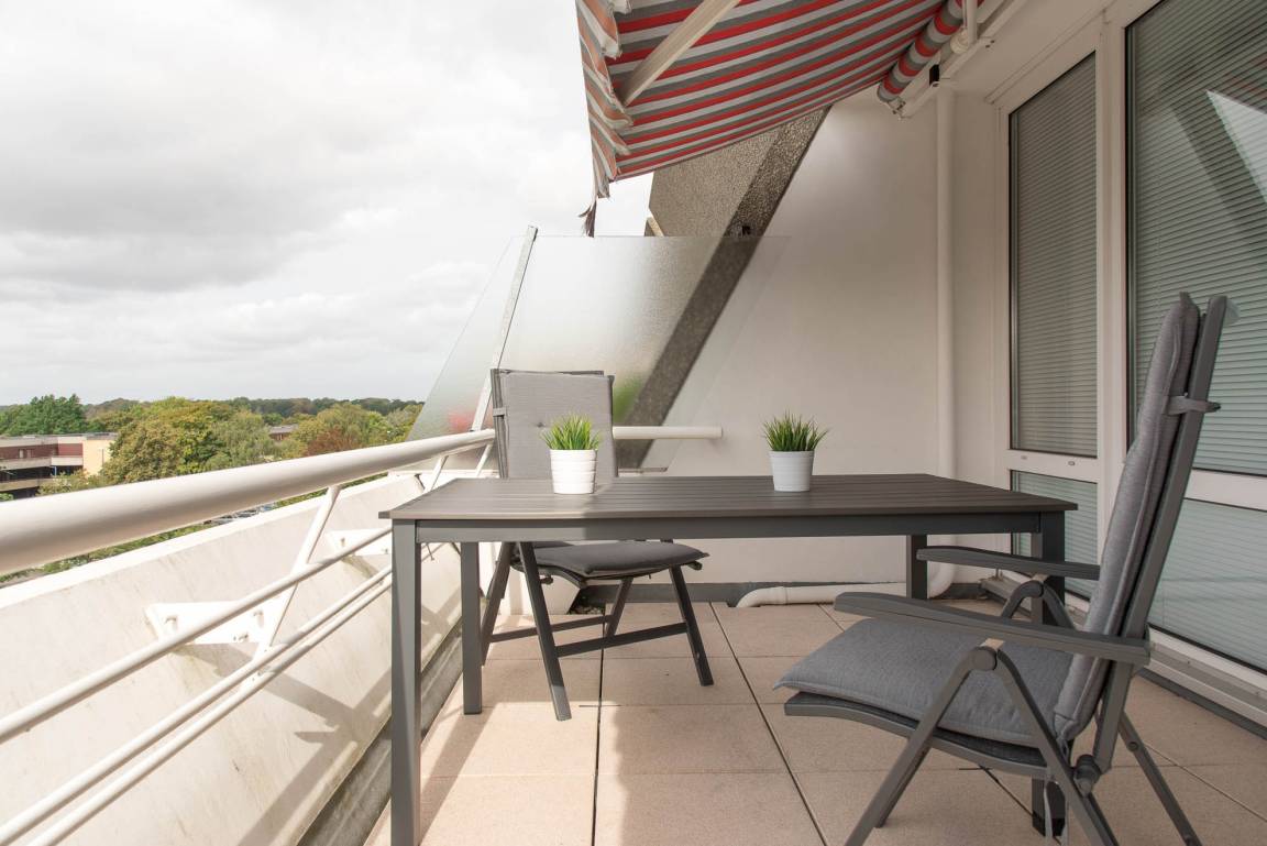 Die Wohnung verfügt in ganzer Breite über bodentiefe Fenster und einen großen Balkon, der vom Wohnbereich aus zu betreten ist. Die südwestliche Ausrichtung des Balkons lässt Sie fast den ganzen Tag über Sonne haben. Eine Markise, sowie Gartenmöbel stehen Ihnen auf dem 12qm großen Balkon zur Verfügung.