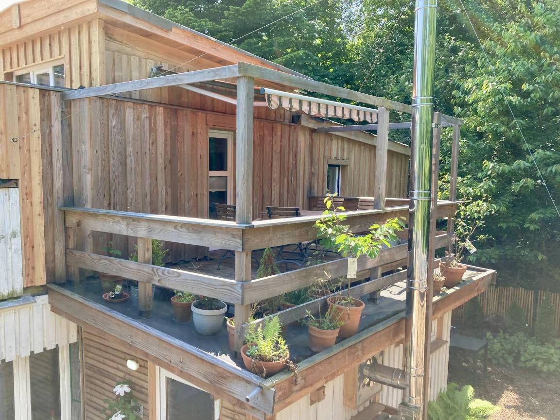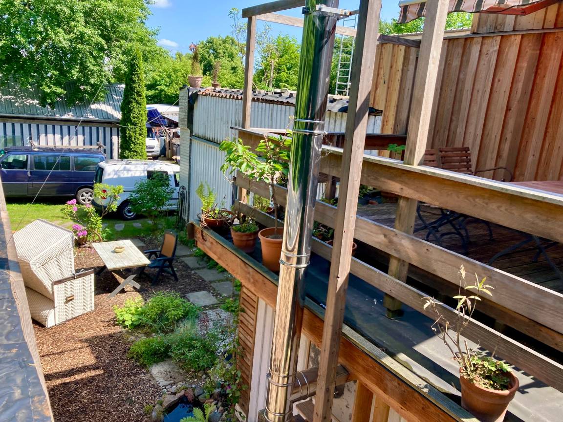 Fewo in Altbauvilla auf dem Gutsresthof Neumühlen Kiel/Schönkirchen ,4 Schlafpl, Duschbad/Badewanne, kleine Dachterrasse, großer Garten mit Gartenterrasse mit Grill, Strandkorb, Liegestühle, Rasenfläche.