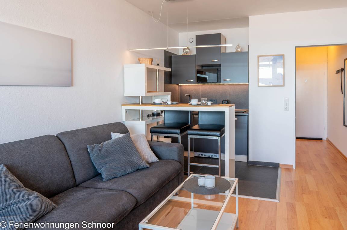 Die neu renovierte Ferienwohnung gewährt einen traumhaften Ausblick auf die Kieler Förde sowie den Schilkseer Hafen und lädt mit seinem dezenten, nordischen Charme zum Verweilen ein. Das 28 qm Appartement bietet Platz für zwei Personen und befindet sich im 10. Stock des Olympia Hotels, der bequem mit dem Fahrstuhl zu erreichen ist.