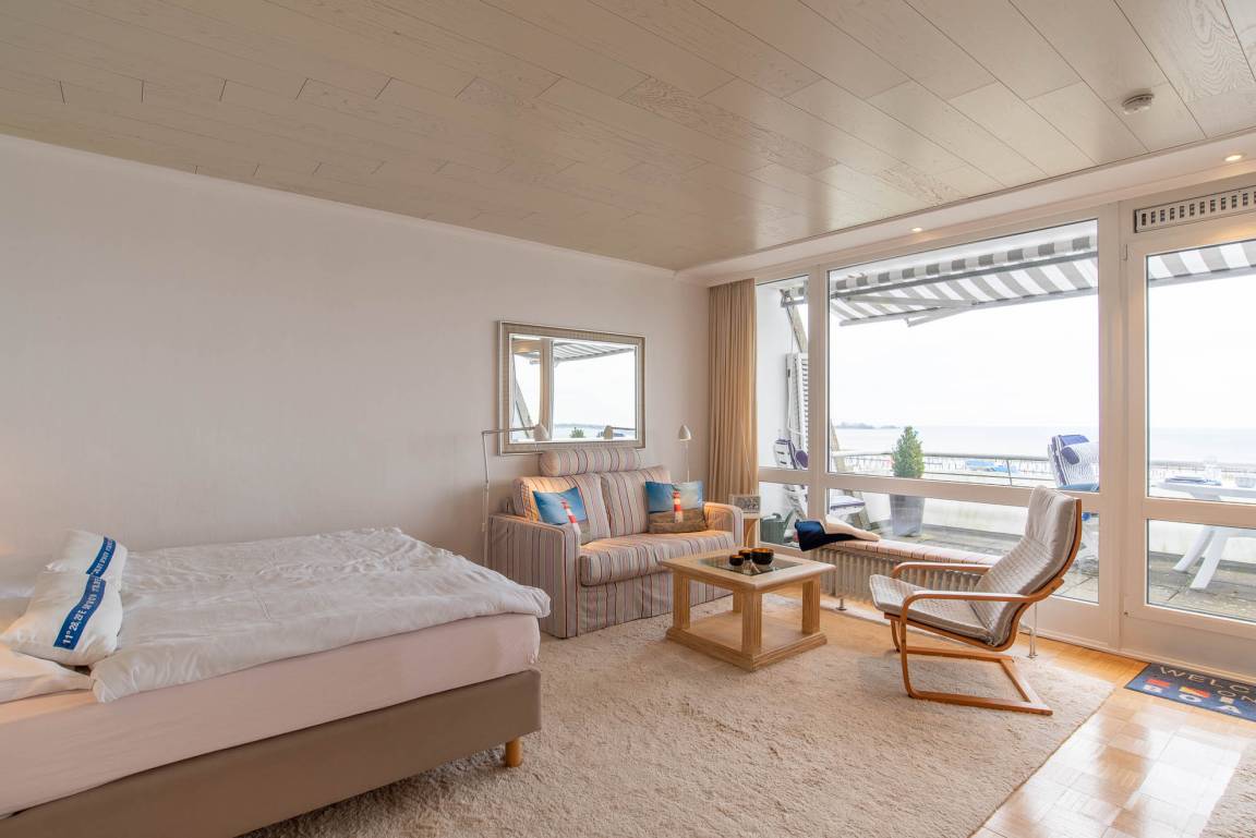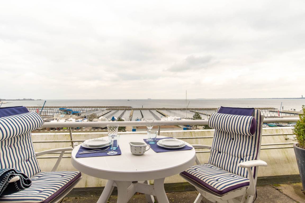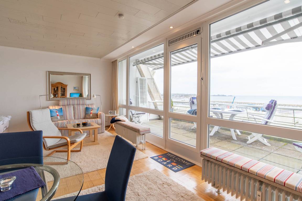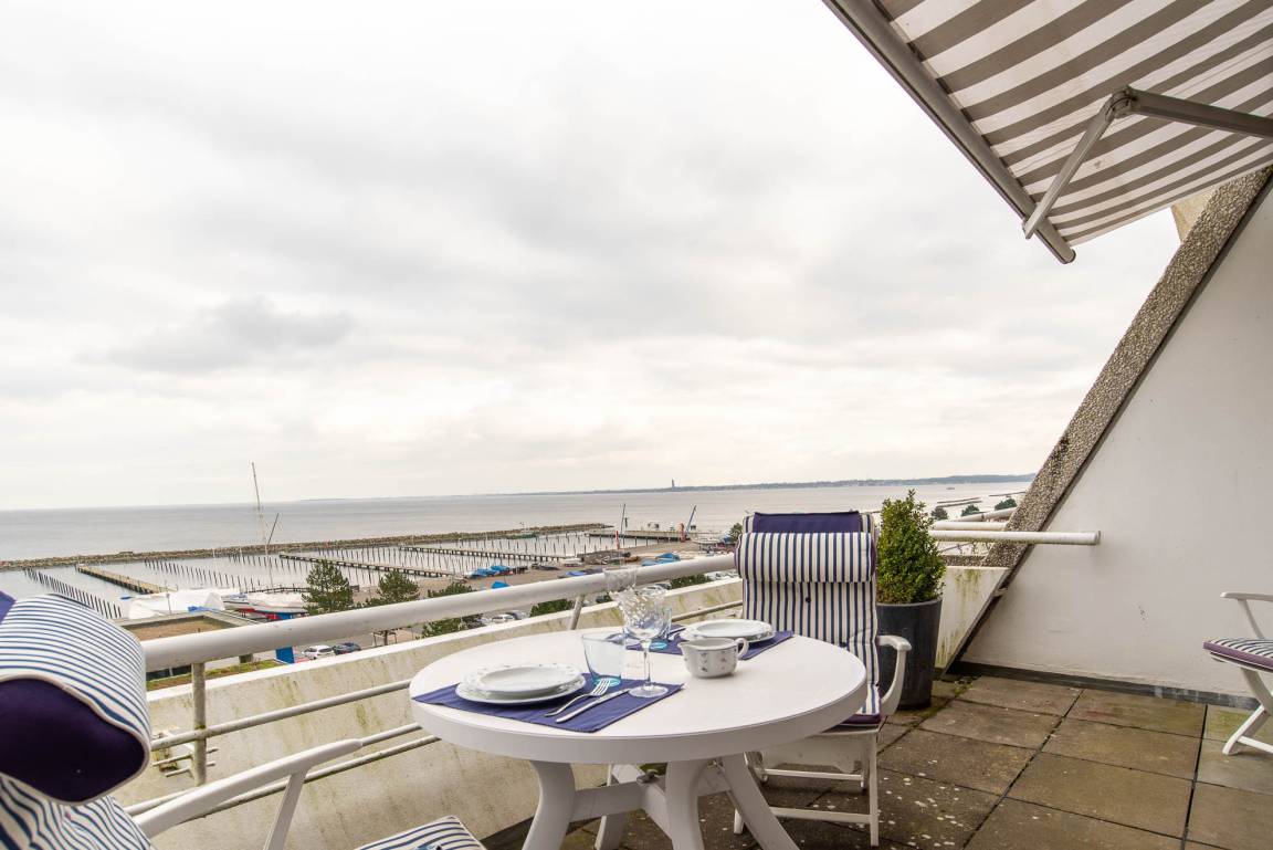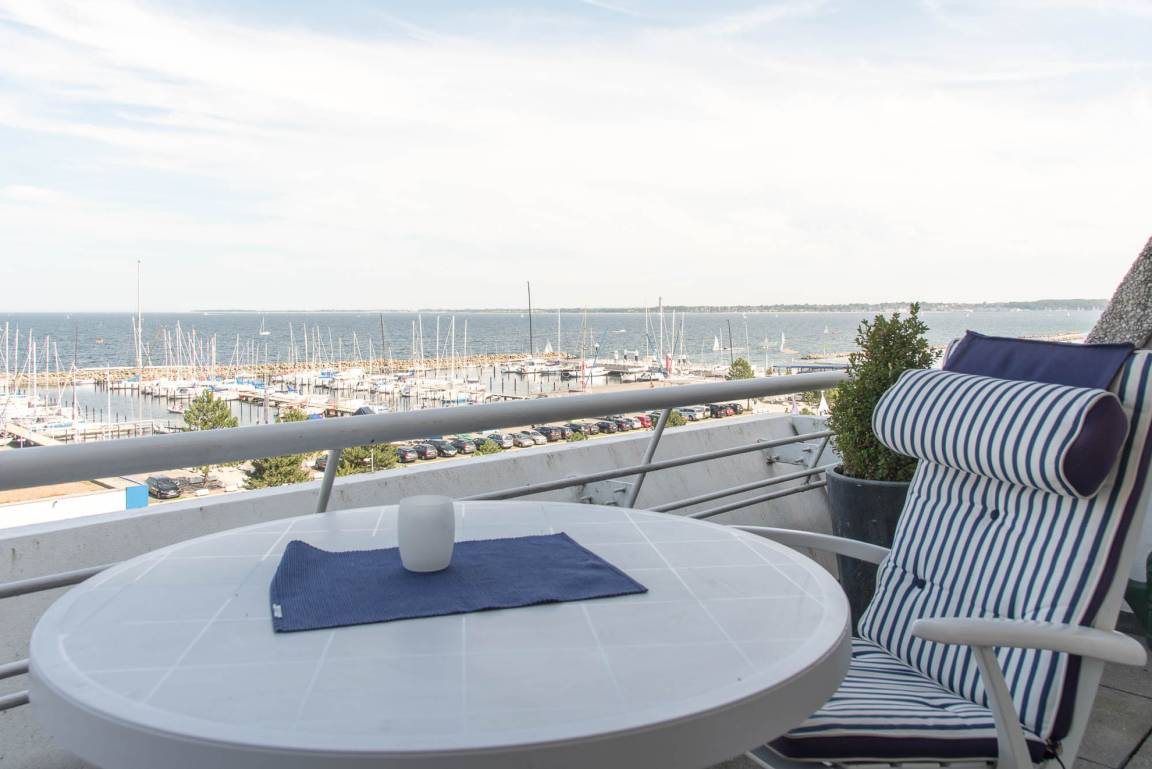 Ihr Urlaub beginnt bei Betreten dieser Ferienwohnung: Sie wohnen im 2. Stockwerk auf 52qm in einer angenehmen Atmosphäre direkt am Olympiahafen mit einem atemberaubenden Blick auf die gesamte Kieler Förde. Genießen Sie den Ausblick direkt vom 12qm großen Balkon aus, welcher mit Gartenmöbeln und einer Markise ausgestattet ist. Aber auch vom gemütlichen Appartment aus können Sie durch die bodentiefe Fensterfront den Schiffsverkehr den ganzen Tag beobachten.