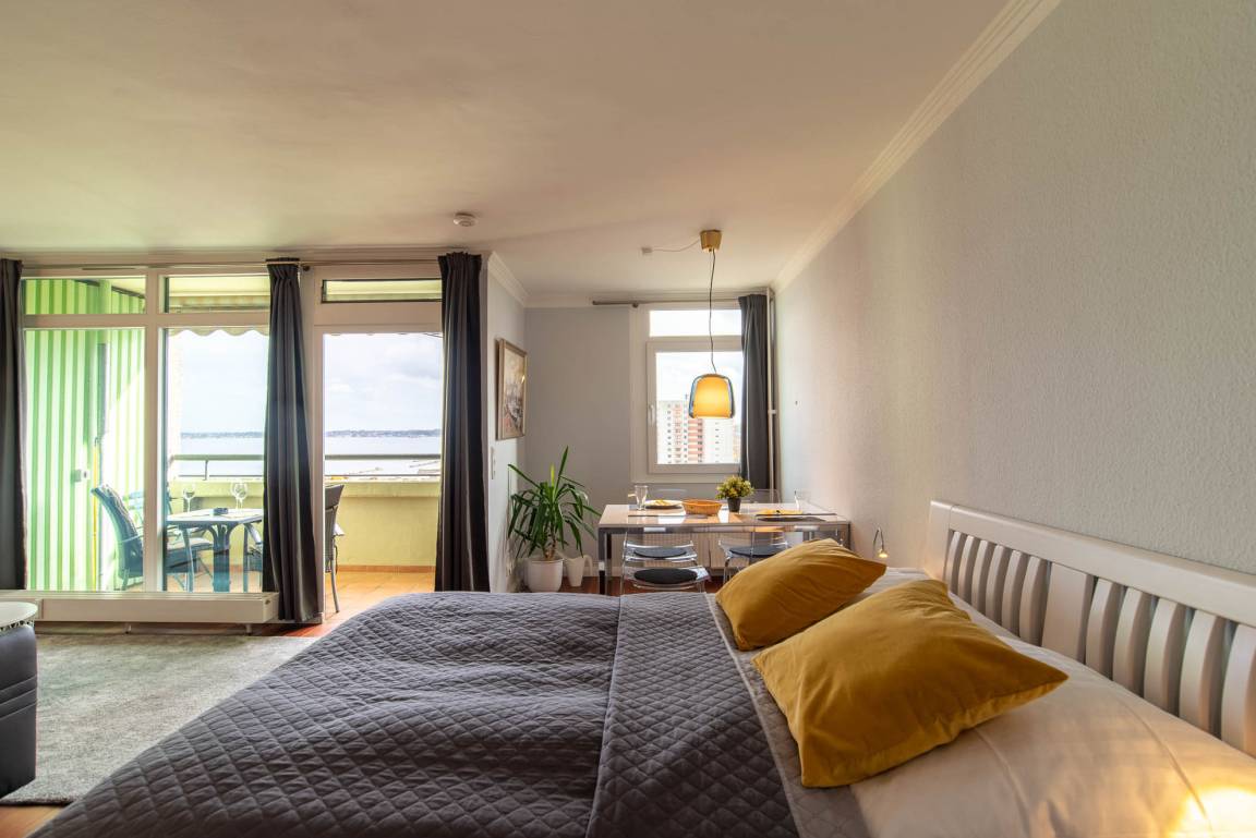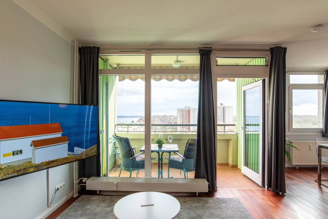 Das Appartement „Seaside" befindet sich im 10.ten Stock im Olympia Hotel in Kiel Schilksee. 2019 wurde die Wohnung erneuert und geschmackvoll eingerichtet.