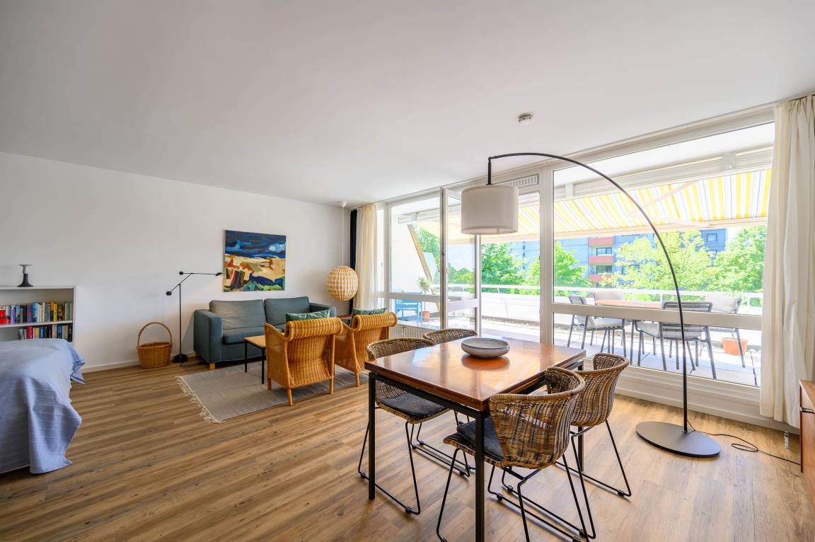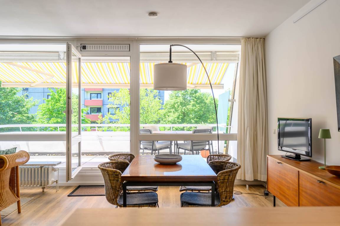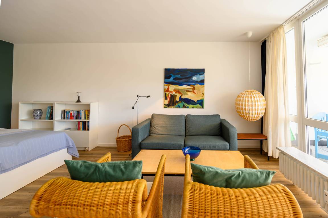 Die Wohnung befindet sich im „Fliegender Holländer" in der 1. Etage ohne Fahrstuhl und besticht durch ihre moderne Ausstattung und die Nähe zum Strand. Die Wohnung ist vollständig eingerichtet und verfügt über ein gemütliches Doppelbett sowie ein Schlafsofa (beide 160 x 200 cm), eine offene Wohnküche und ein modernes Duschbad. Der Wohnbereich lädt mit seinem Flachbild-TV und einer komfortablen Ausstattung zum Entspannen ein, während die Küche mit Geschirrspüler, Kaffeemaschine und weiteren Annehmlichkeiten keine Wünsche offen lässt.
