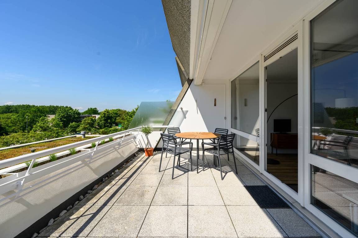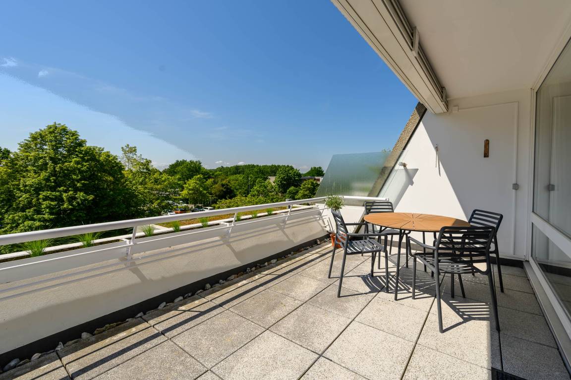 Der große Balkon ist perfekt, um die frische Ostseeluft und den Sonnenuntergang zu genießen.