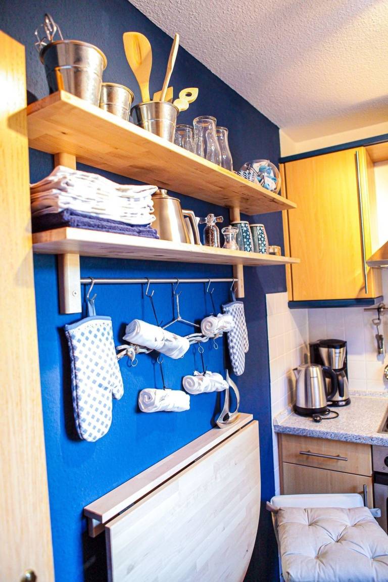 Küche: Cerankochfeld, Backofen mit Umluft und Grill, Mikrowelle, Kühlschrank mit Gefrierfach, Geschirrspülmaschine, Kaffeemaschine, Wasserkocher, Eierkocher, Toaster, Mixer
