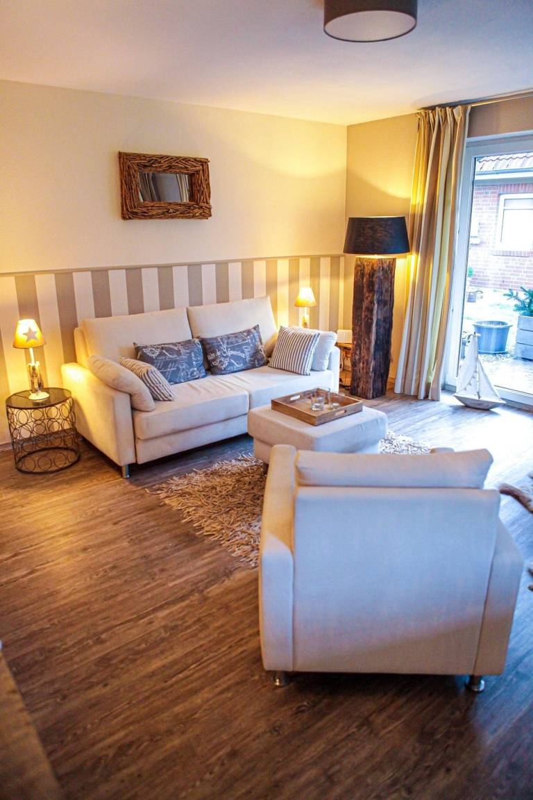 Die liebevoll eingerichtete Ferienwohnung ist 65 qm groß. Die Wohnung ist hell und gehoben komplett ausgestattet. Das Wohnzimmer mit Essbereich sowie das Schlafzimmer verfügen über bodentiefe Fenster und Türen. Ruhige Lage in zweiter Reihe mit Terrasse.
