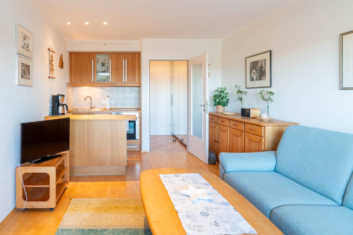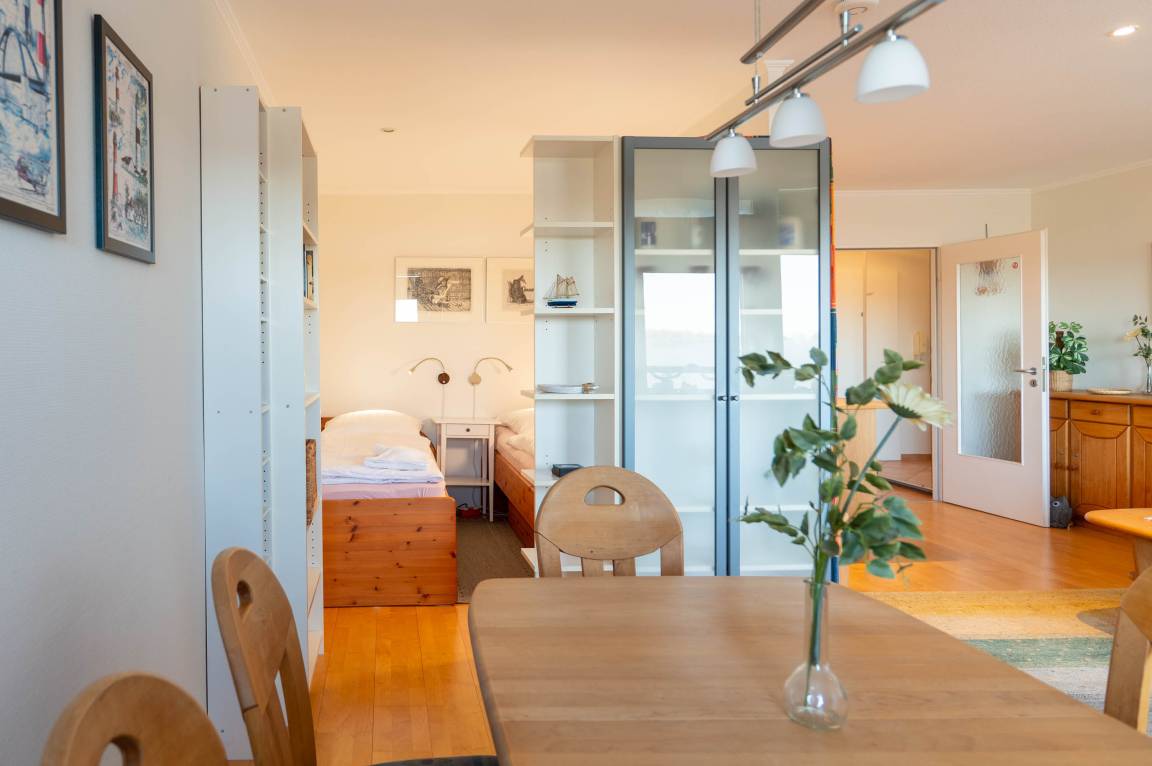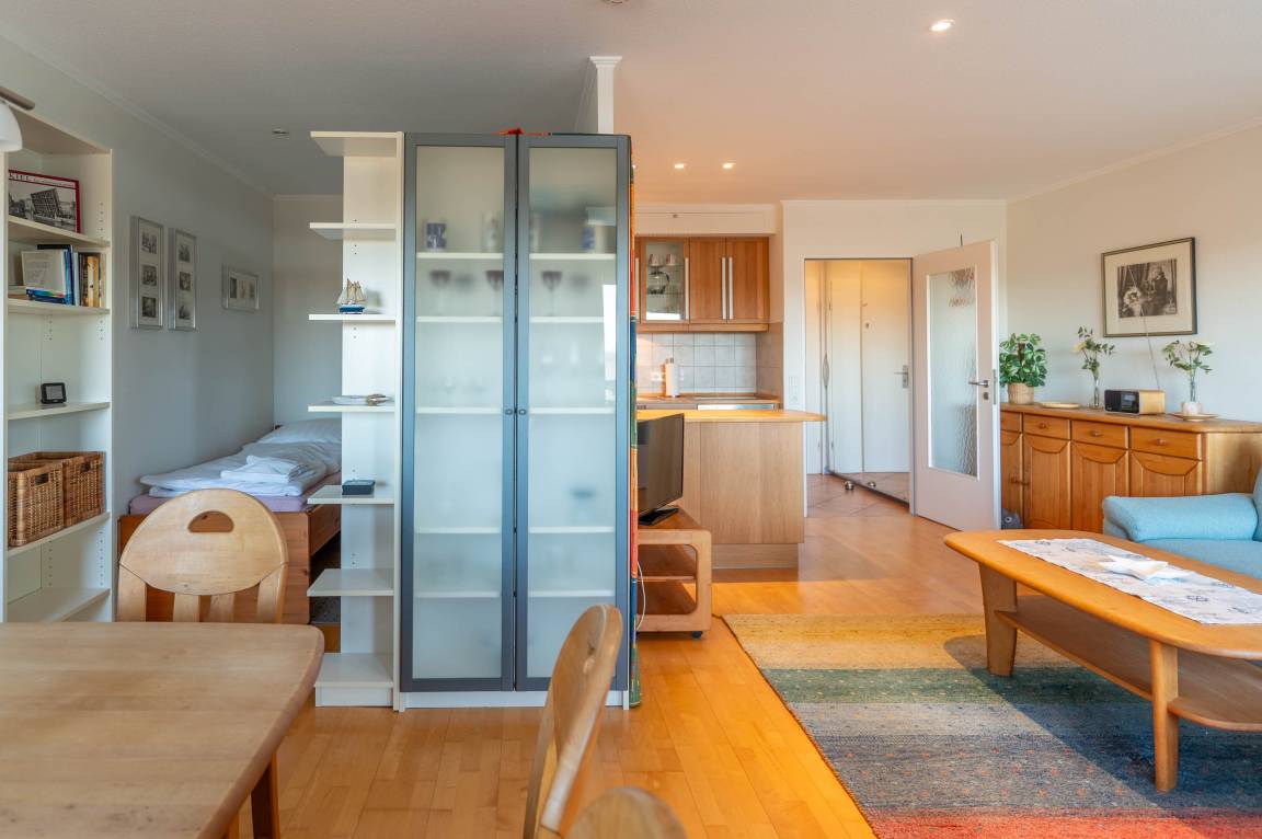 Herzlich Willkommen in unserer Ferienwohnung "Auszeit" in Kiel-Schilksee. Die Wohnung bietet auf 47 m² Platz für maximal 2 Personen und befindet sich in der 4. Etage des Olympia Hotels. Sie ist ausgestattet mit einem TV-Flachbild, einer Fahrradunterstellmöglichkeit und einem PKW Stellplatz. Bitte beachten Sie, dass Haustiere in der Wohnung nicht erlaubt sind. Für Ihren Komfort steht Ihnen Internet/ WLAN zur Verfügung. Eine Kaffeemaschine ist ebenfalls vorhanden. Die Wohnung ist eine Nichtraucherwohnung und bietet einen wunderschönen Meerblick. Genießen Sie die frische Luft auf dem Balkon oder kochen Sie in der offenen Wohnküche. Für umweltbewusste Gäste steht eine öffentliche E-Auto Ladestation in ca. 200m Entfernung zur Verfügung. Der Check-in erfolgt eigenständig. Der Strand ist nur ca. 100 m entfernt und das Ortszentrum erreichen Sie in ca. 1000 m. Wir freuen uns auf Ihren Besuch!