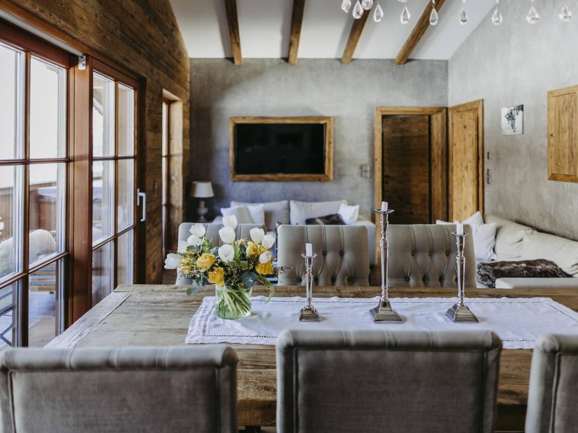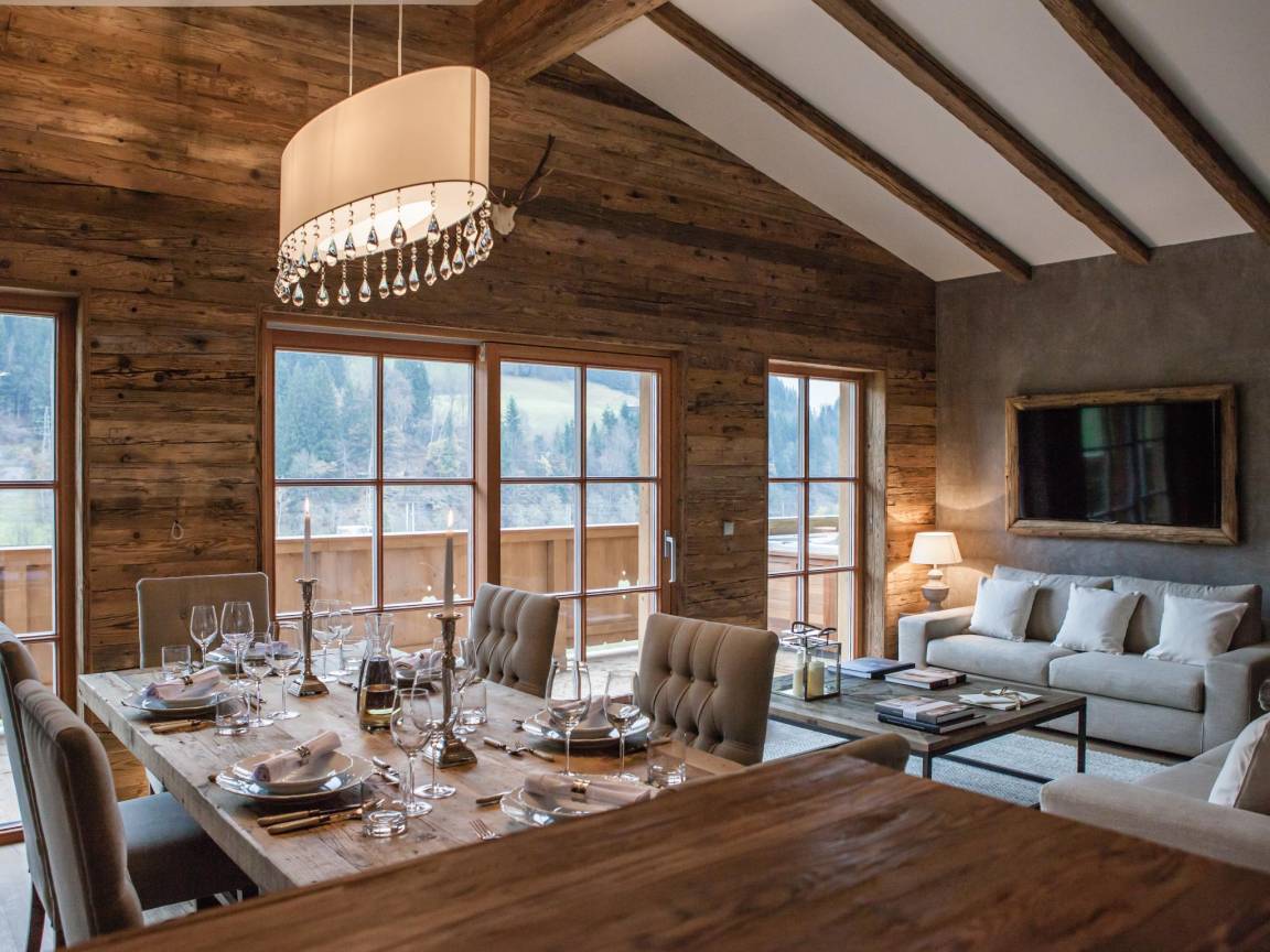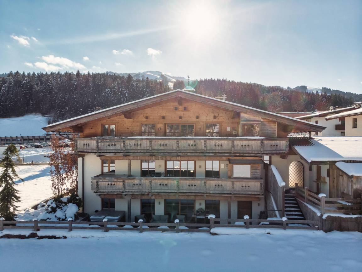Das Chalet hat eine ideale Ski-in/Ski-out-Lage und ist nur wenige Gehminuten von der Talstation der Fleckalm-Seilbahn (neu gebaut im Jahr 2019) und der Abfahrtspiste entfernt. Beide sind weniger als 100 m Luftlinie vom Chalet entfernt! In weniger als 10 Minuten bringt Sie die hochmoderne 10er-Gondelbahn ganz bequem auf den Gipfel des weltberühmten Skigebiets Kitzbühel - Kirchberg, das auch ein wahres Wander- und Mountainbike-Paradies ist. Die Fleckalmbahn ist neben der Hahnenkammbahn einer der Hauptzugänge zum Ski- und Wandergebiet in Kitzbühel. Im Sommer können Sie schöne Rad- und Wandertouren durch die Natur unternehmen. Außerdem befinden sich mehrere Restaurants in Gehweite des Chalets.