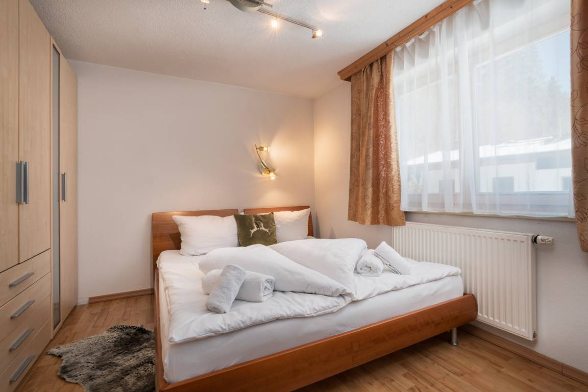 Die Wohnung verfügt über eine sonnige Terrasse mit Bergblick und lädt zu entspannten Stunden im Freien ein. Der helle Wohn- und Schlafbereich mit komfortablem Doppelbett (180 × 200 cm) bietet viel Platz zum Wohlfühlen. Die hochwertig ausgestattete Küche mit Herd, Backofen, Dampfgarer, Geschirrspülmaschine, Kühlschrank sowie Kaffeemaschine, Wasserkocher und Toaster ermöglicht auch bei längeren Aufenthalten höchsten Komfort.