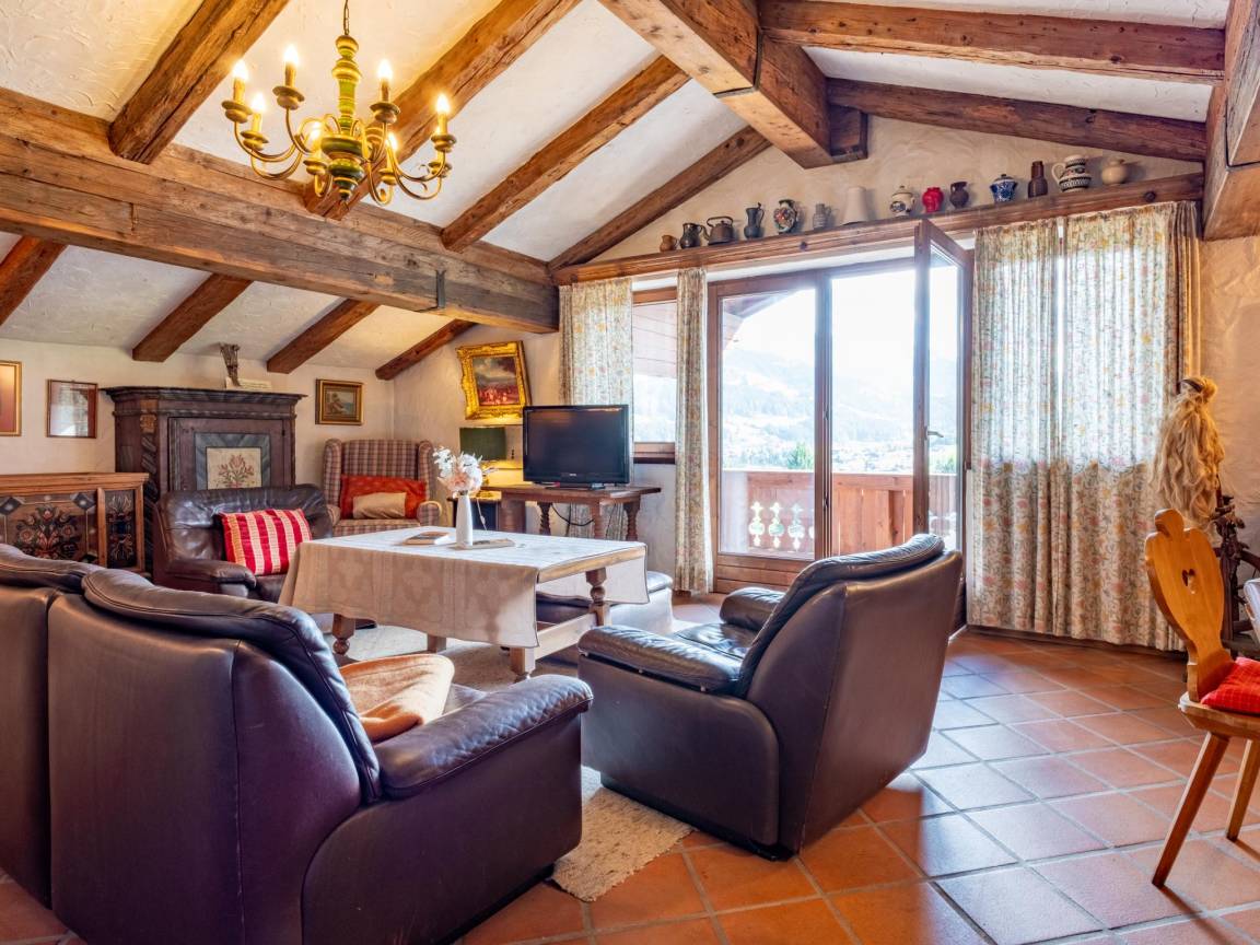 Hausbeschreibung : Das geräumige Apartment in uriger Tiroler Bauweise befindet sich im obersten Stock und gewährt Ihnen somit einen bezaubernden Ausblick auf Kirchberg und die umliegenden Berge. Es verfügt über eine rustikale Stube mit einem einladenden Kachelofen und gemütlichen Sitzgelegenheiten sowie zwei großzügige Schlafzimmer, ein komfortables Bad und eine voll ausgestattete Küche. Der weitläufige Gemeinschaftsgarten lädt dazu ein, sich frei zu entfalten und sonnige Tage im Liegestuhl zu genießen