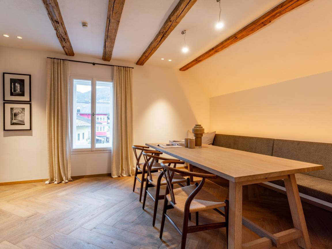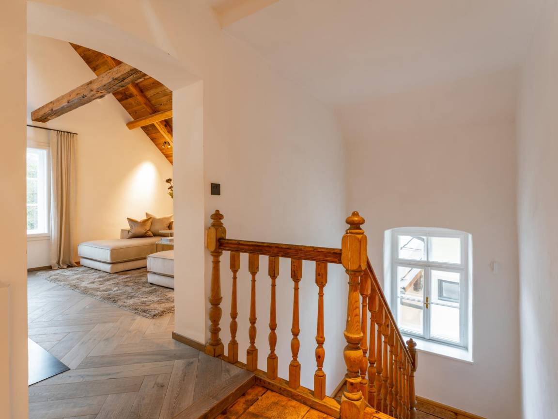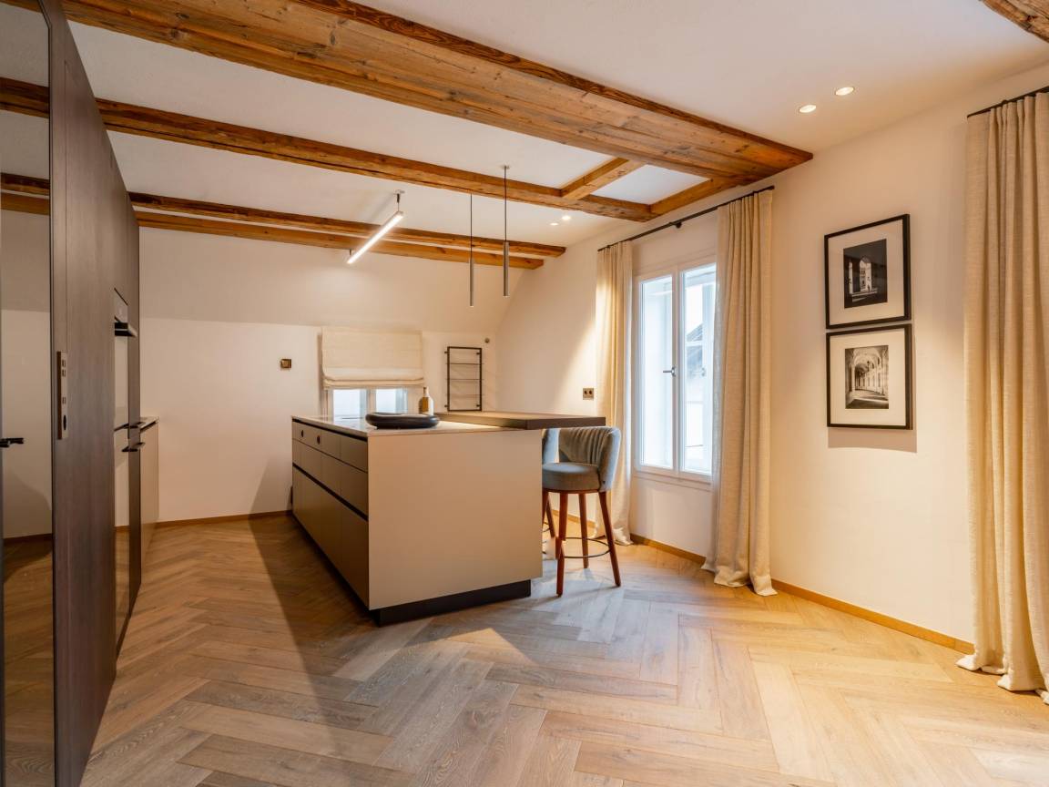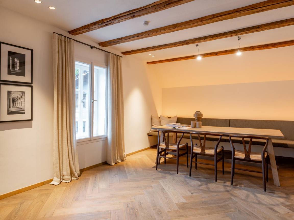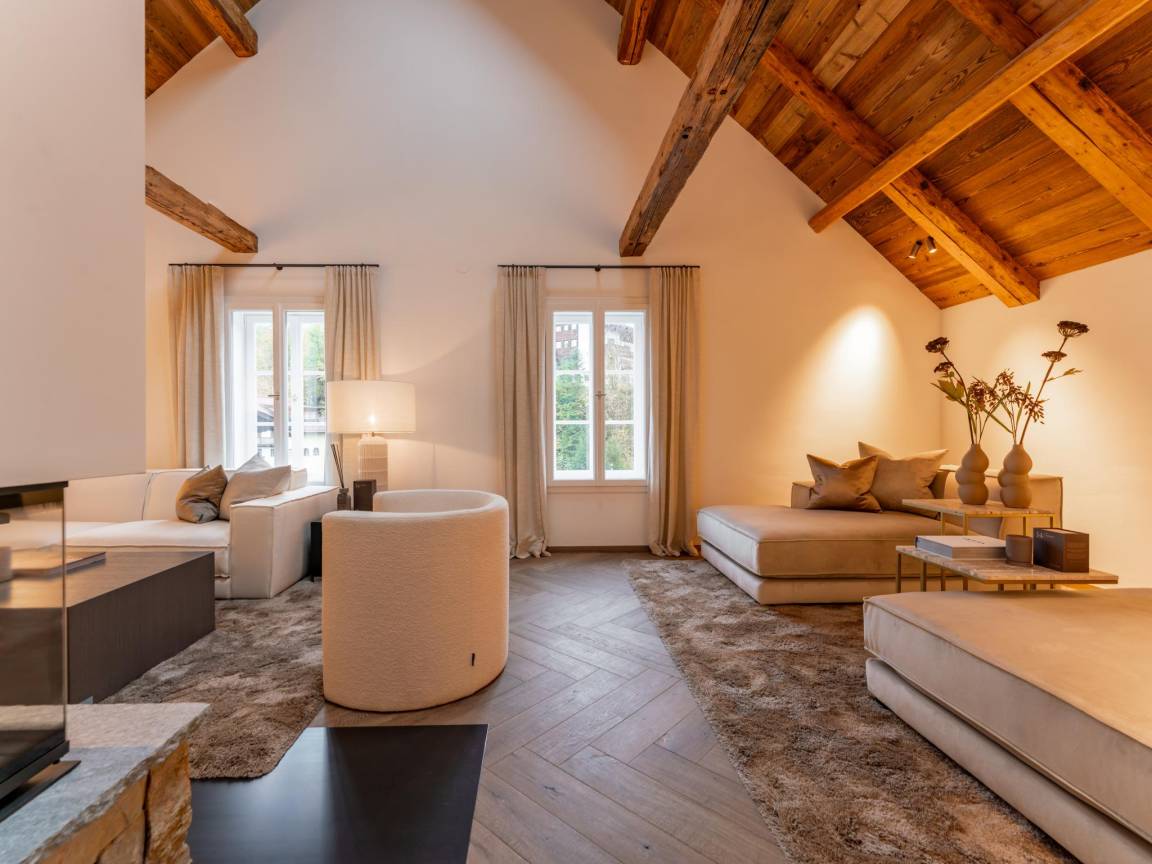 Hausbeschreibung : Diese historische Villa im Zentrum von Kirchberg bietet allen Luxus, den Sie sich wünschen können und ist vom renommierten Designer Eric Kuster dekoriert. Im Untergeschoss befindet sich ein Weinkeller, ein Wellnessbereich mit Sauna, Whirlpool, Dusche und Sonnenliegen. Im Erdgeschoss betritt man die Villa durch eine Prunkhalle, in der die alten Elemente erhalten geblieben sind. Es gibt ein Wohnzimmer mit Kamin, eine Küche mit Bar und Weinkühlschrank, 6 Schlafzimmer, 4 Bäder und eine Dachterrasse