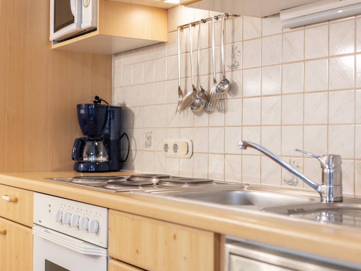 Layout : Souterrain: offene Küche mit Wasserkocher, Kochherd(4 Kochplatten), Dunstabzugshaube, Kaffeemaschine(Filter), Backofen, Mikrowelle, Kühl-/Gefrierkombination , Wohn/Esszimmer mit Doppelschlafcouch(140 x 200 cm), TV, Esstisch(6 Personen) , Schlafzimmer mit Doppelbett(180 x 200 cm) , Schlafzimmer mit Doppelbett(180 x 200 cm), TV, Esstisch(2 Personen), Tresor , Badezimmer mit Waschbecken, Dusche , Toilette