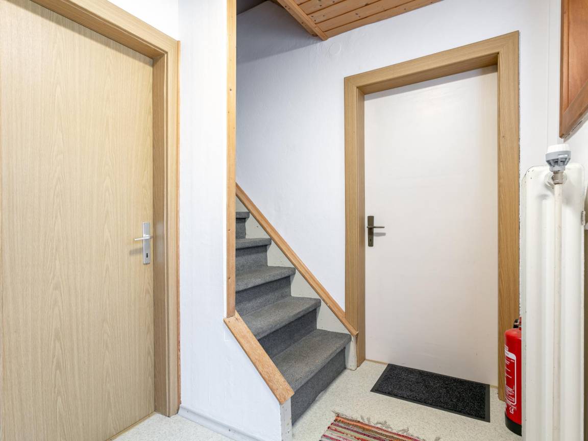 Layout : In der 1. Etage: Küche mit Toaster, Kochherd(2 Kochplatten, Ceranfeld, elektrisch), Kaffeemaschine(Filter), Kühlschrank(+ Gefrierfach) , Wohn-/Schlafzimmer mit Doppelschlafcouch, TV, Esstisch(4 Personen) , Schlafzimmer mit Doppelbett , Badezimmer mit Dusche, Waschbecken, Toilette