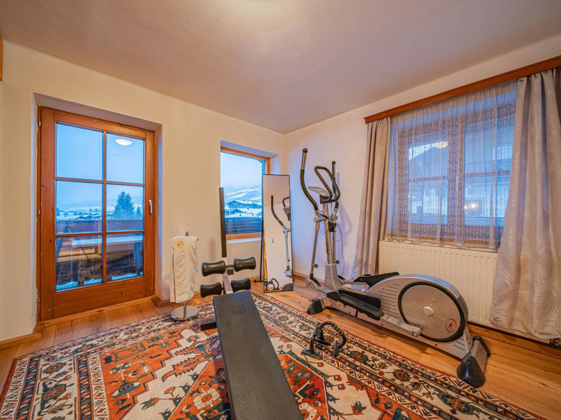 Hausbeschreibung : Dieses gemütliche Ferienhaus verbindet alpinen Charme mit modernem Komfort und bietet Raum für entspannte Urlaubstage in den Kitzbüheler Alpen. Die offene Wohnküche mit Kamin lädt zum geselligen Beisammensein ein, während die private Sauna pure Erholung verspricht. Drei Schlafzimmer mit Doppelbetten garantieren erholsamen Schlaf. Ein Fitnessraum sorgt für sportliche Aktivität. Der umzäunte Garten mit Terrasse und Balkon bietet herrliche Ausblicke auf die Tiroler Bergwelt