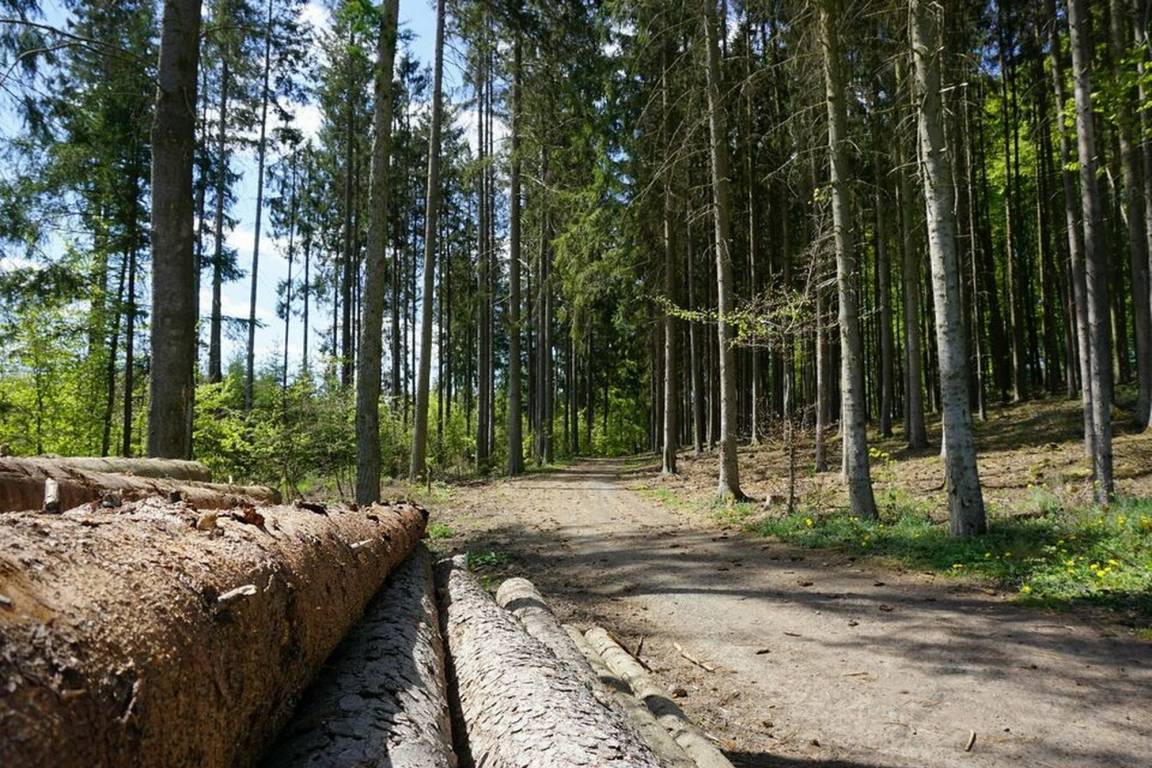 Von dem Balkon aus können Sie die Aussicht in den Wald und die Landschaft vom Hessischen Bergland genießen.