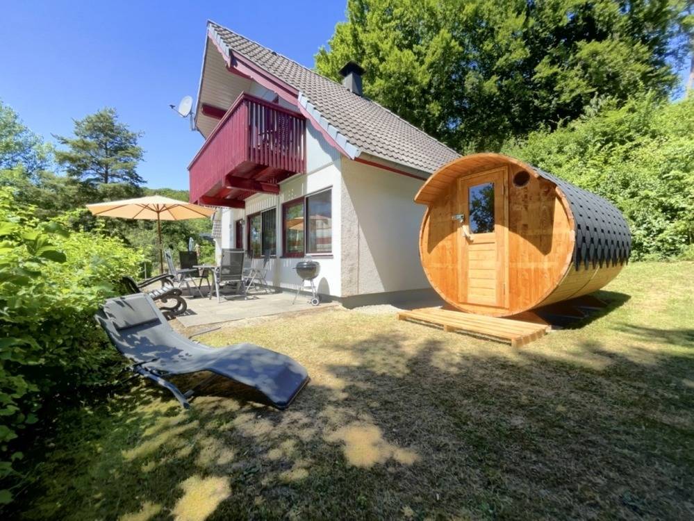 Erlebe einen unvergesslichen Urlaub im freistehenden Ferienhaus Felix von Mein-Seepark mit Blick auf den See! Das ca. 450 qm große Grundstück bietet eine sehr gute Lage oberhalb der Straße und verfügt über eine private Fasssauna mit Elektroofen neben der Terrasse. Das Nichtraucherhaus bietet Platz für bis zu 6 Personen in zwei Schlafzimmern mit Doppelbetten und einem Schlafzimmer mit 2 Einzelbetten. Eine Luft-Wärmepumpe sorgt für eine angenehme Temperatur sowohl im Sommer als auch im Winter und das digitale Türschloss ermöglicht eine flexible An- und Abreise ohne Schlüsselübergabe.