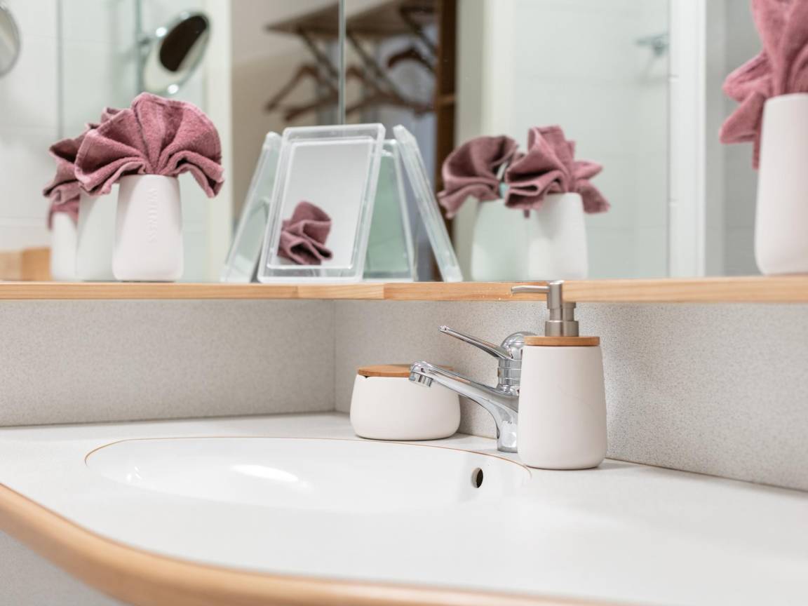 Layout : In der 3. Etage: offene Küche mit Kochherd(2 Kochplatten), Kaffeemaschine(nespresso cups), Mikrowelle, Geschirrspüler, Kühl-/Gefrierkombination , Wohn-/Schlafzimmer mit Doppelschlafcouch(180 x 200 cm), TV, Esstisch(4 Personen), Sitzecke , Schlafzimmer mit Doppelbett(180 x 200 cm), TV, Waschmaschine , Badezimmer mit Dusche, Waschbecken , Toilette mit Waschbecken, Toilette , 1x Garage(1 Parkplatz), Staubsauger, Balkon, Bügelbrett, Bügeleisen