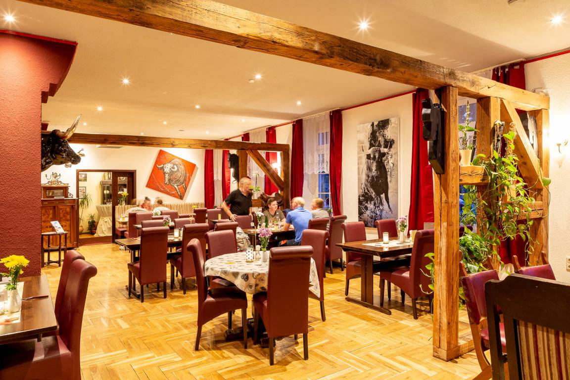 Wohnen Sie in unserem wunderschönen Gutshaus mit eigenem Steak-Haus Restaurant.