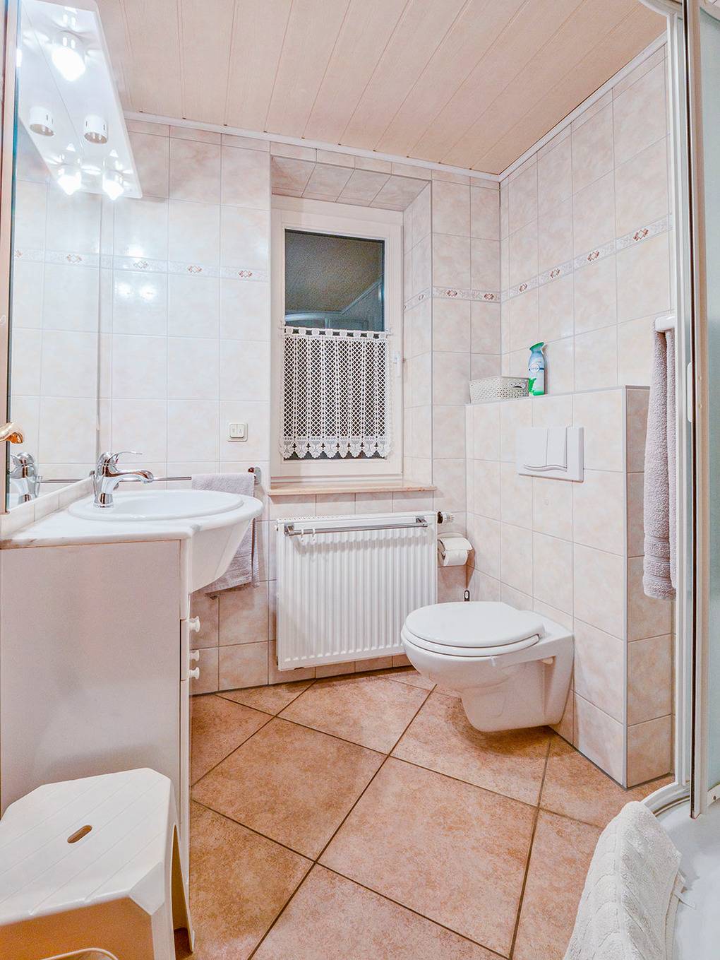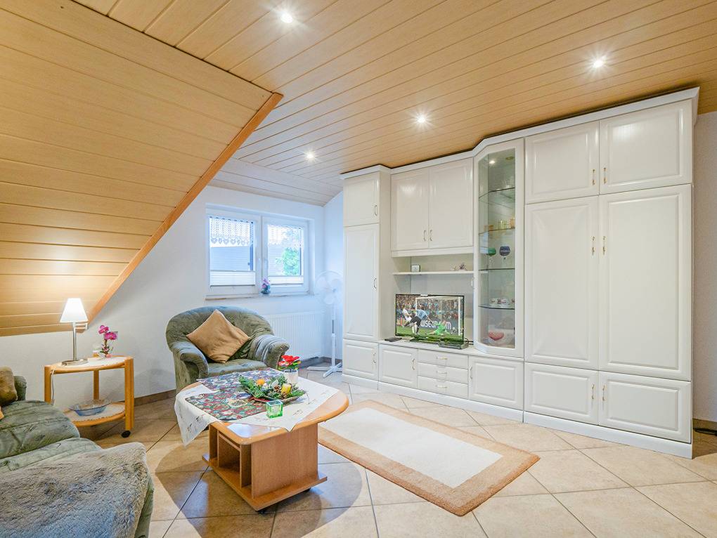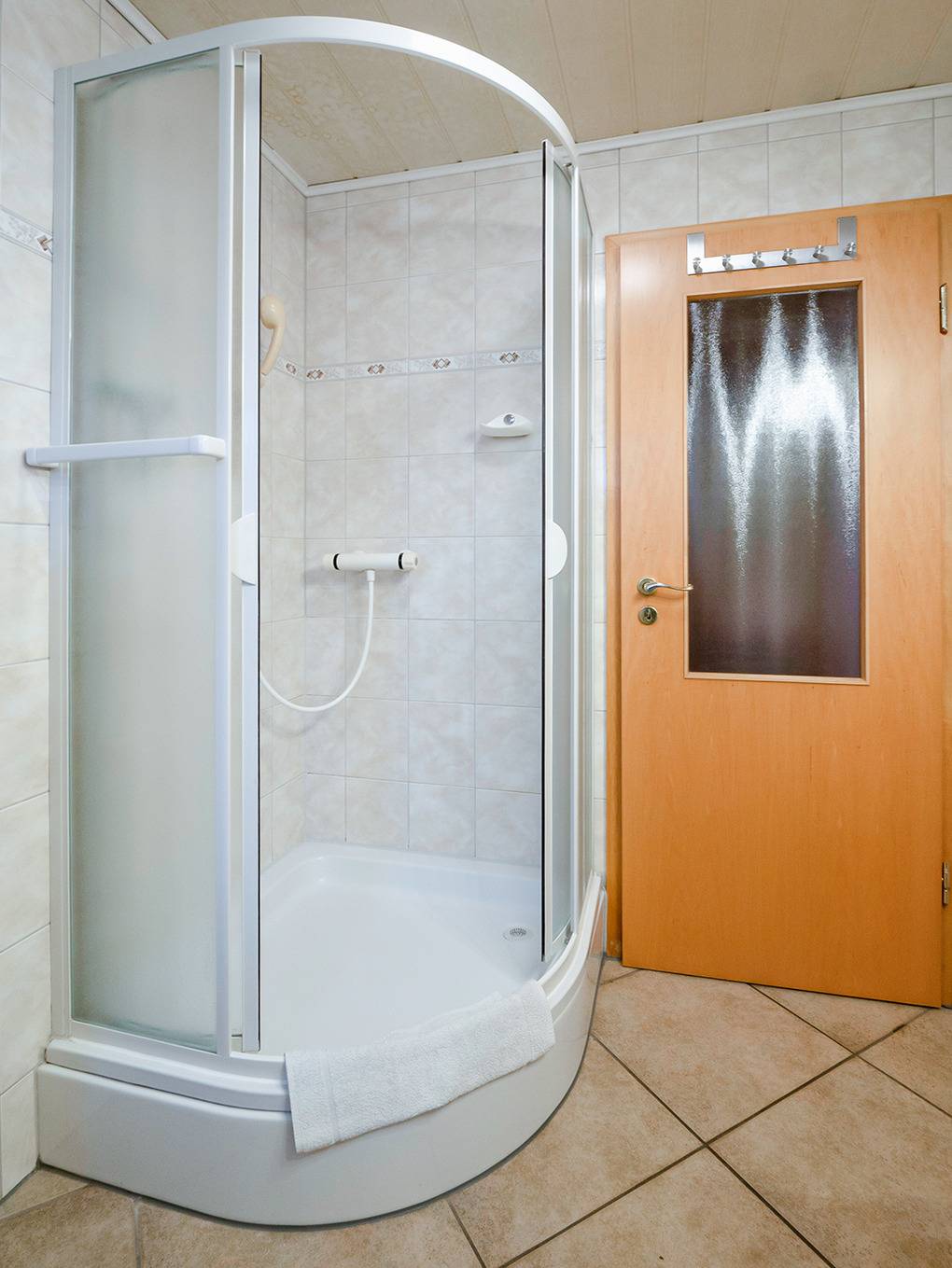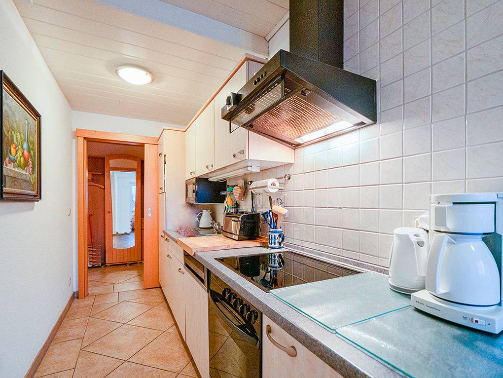 D 46.64 Wohnung 2-3 Pers.: Großzügige 2 1/2-Zimmerwohnung mit 58 qm Wohnfläche, 1. Etage. Wohn-/Schlafraum mit Couchgarnitur, Sat-TV, Schrankbett (1 Pers.). Wohnküche mit Esstisch, gut ausgestatteter Küchenzeile (Backofen, Mikrowelle, Spülmaschine). Doppelzimmer. Bad/WC. Überdachter, verglaster Balkon mit Sitzmöbeln.