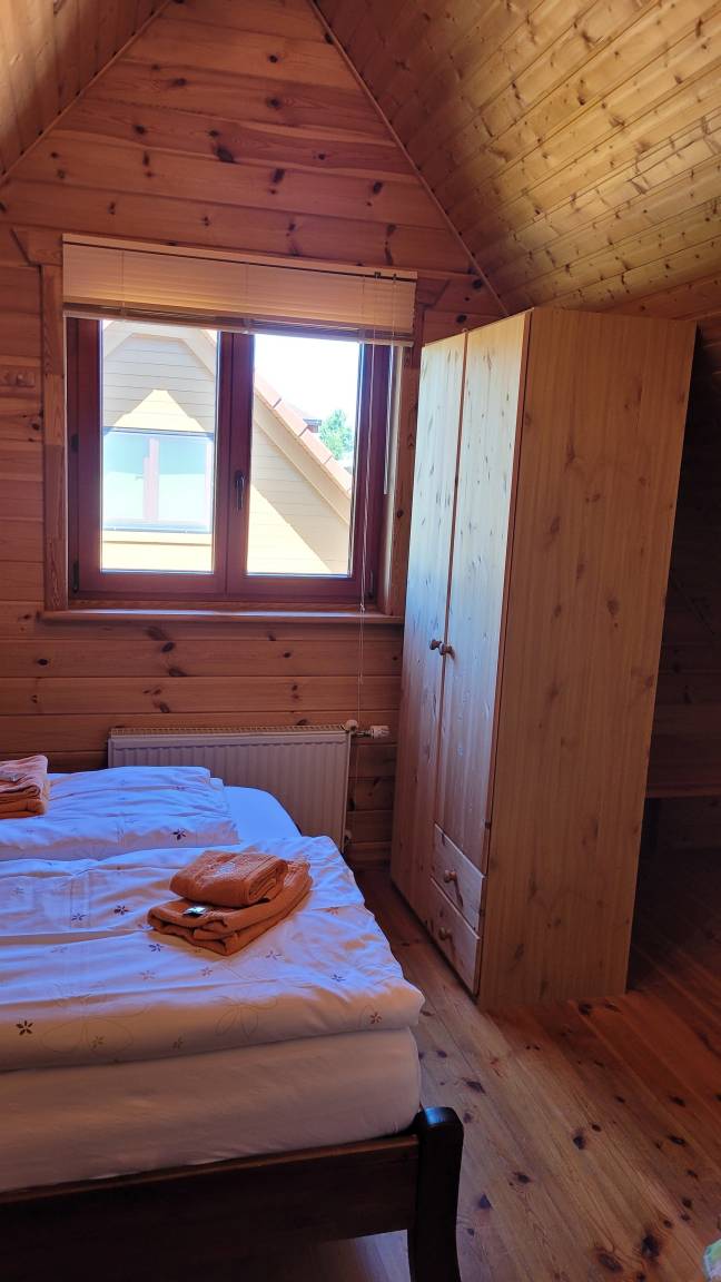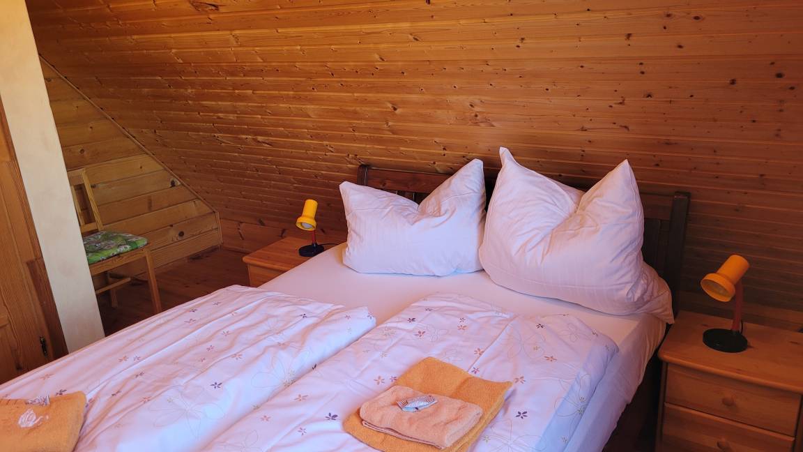 Im Obergeschoß befinden sich die beiden Schlafräume. Der erste Schlafraum enthält ein Doppelbett, der Zweite zwei Einzelbetten. Die Terrasse ist mit Sonnenschirm und diversen Gartenmöbeln ausgestattet.