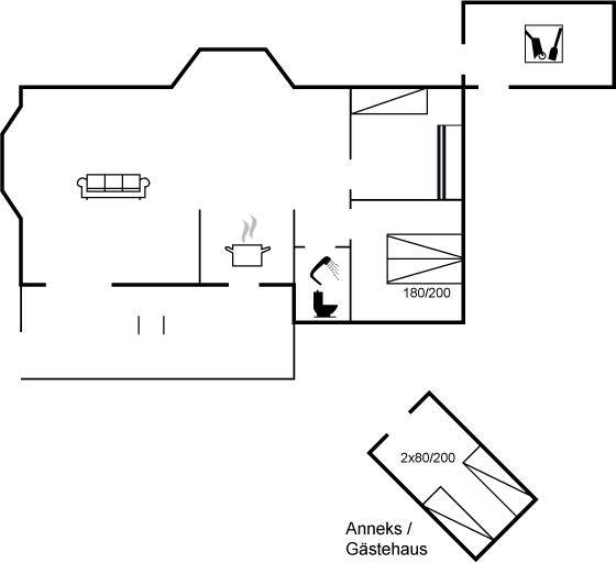Im Ferienhaus gibt es einen Fernseher mit mehrere deutsche und mindestens 4 dänische Fernsehsender, DVD-Player, Radio, CD-Player und WLAN.