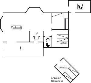 Das Ferienhaus ist für 6 Personen geeignet, wurde über die Jahre ausgebaut und renoviert und hat eine Wohnfläche von 72 m². Bei der letzten größeren Renovierung wurde das Haus gedämmt, es wurden wartungsfreundliche Böden verlegt, es wurde ein neuer Herd installiert und die Küchenausstattung u. a. m. wurde modernisiert.