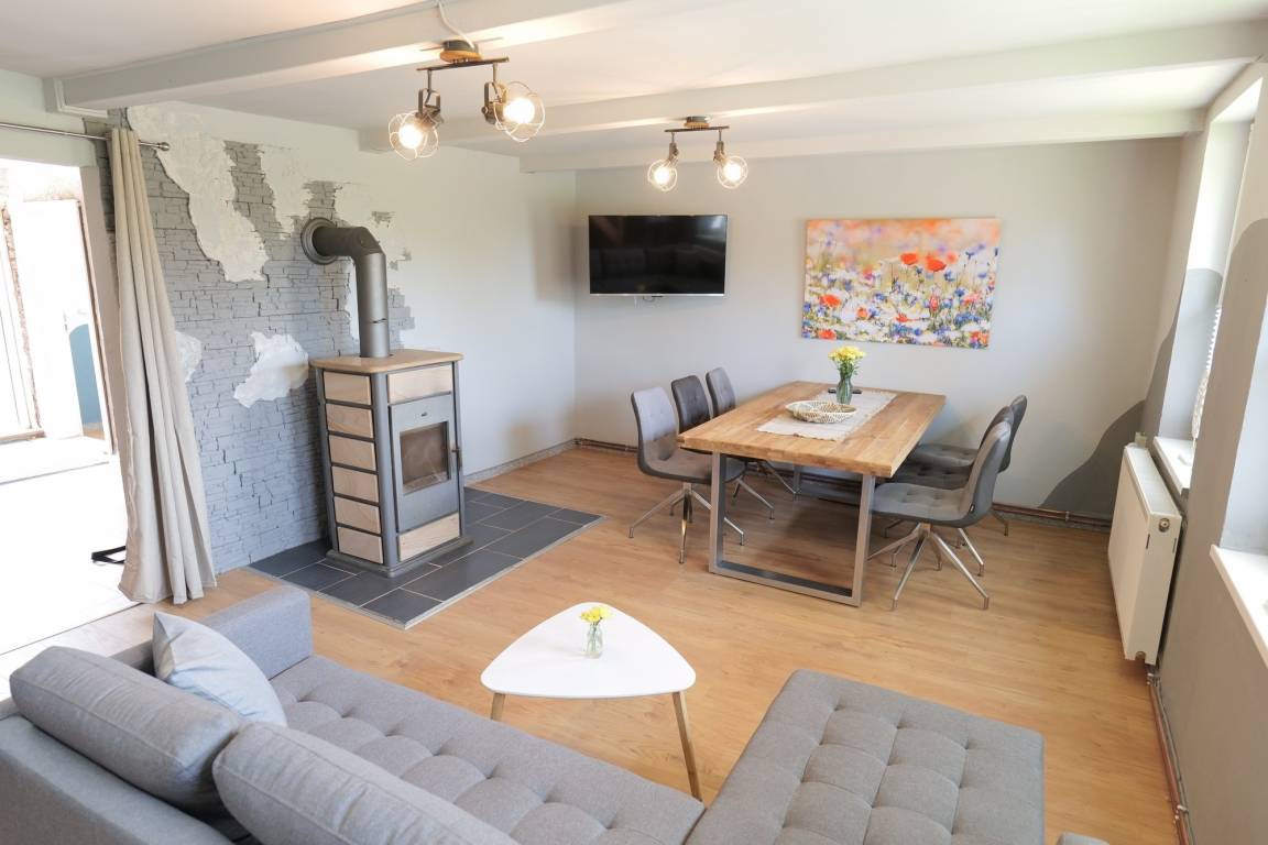 - Wohnzimmer mit Essbereich für 6 Personen, großer Sofalandschaft, Kamin und TV