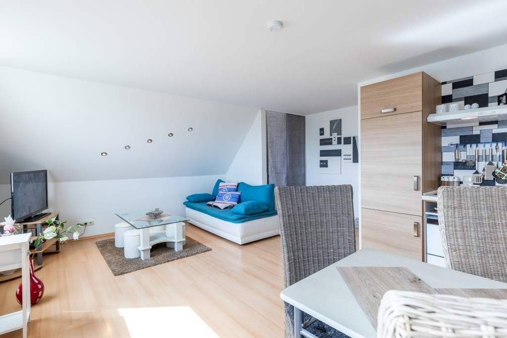 Diese freundlich und hell gestaltete Ferienwohnung mit 2 Zimmern, WLAN, Balkon und Parkplatz vor dem Haus eignet sich für einen komfortablen und erholsamen Urlaub für 2 Gäste und Haustier.
