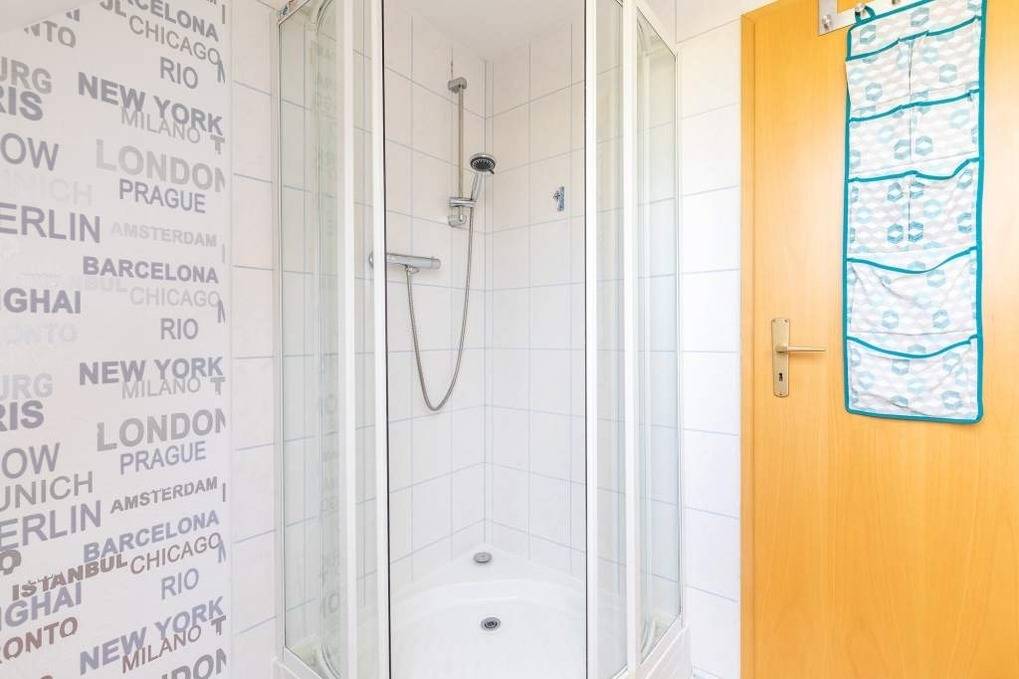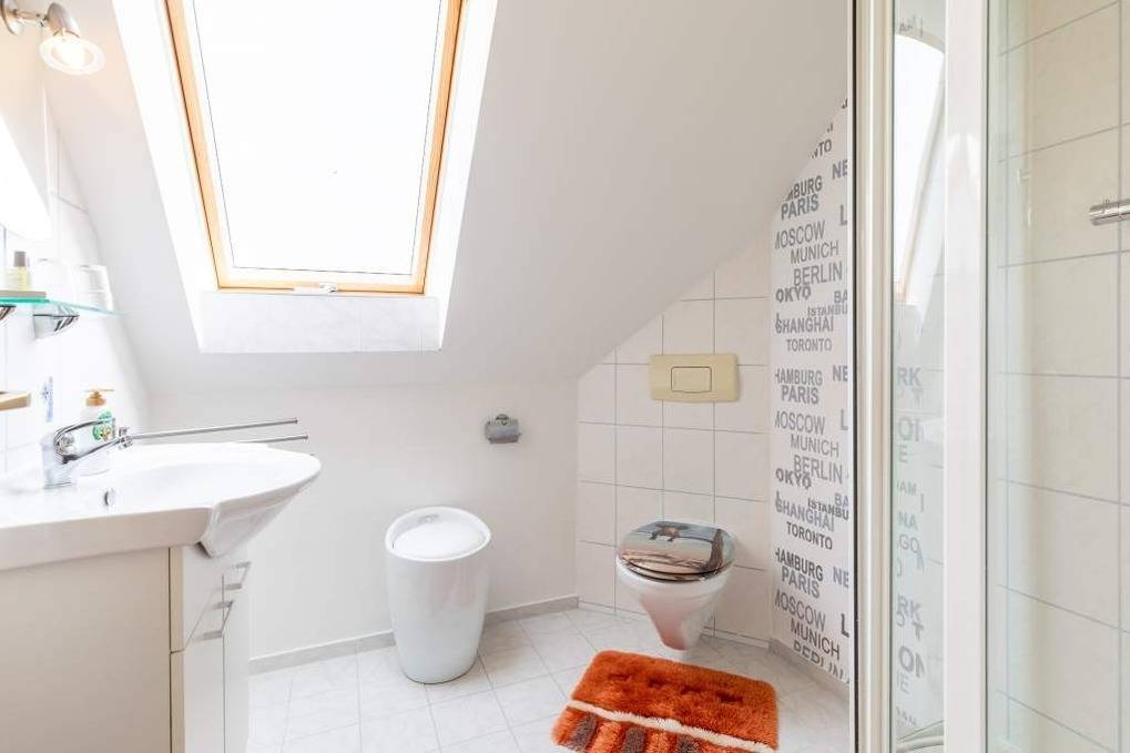 Selbstverständlich gibt es auch ein eigenes, helles Bad mit Fenster, welches mit Dusche und WC ausgestattet ist. Auch ein Fön liegt bereit.