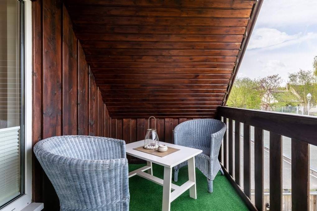 Darüber hinaus verfügt die Wohnung über einen möblierten West-Balkon (Loggia) mit herrlichem Ausblick in die Natur, auf dem Sie gerne ein Buch lesen können.