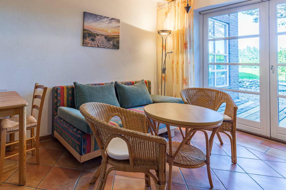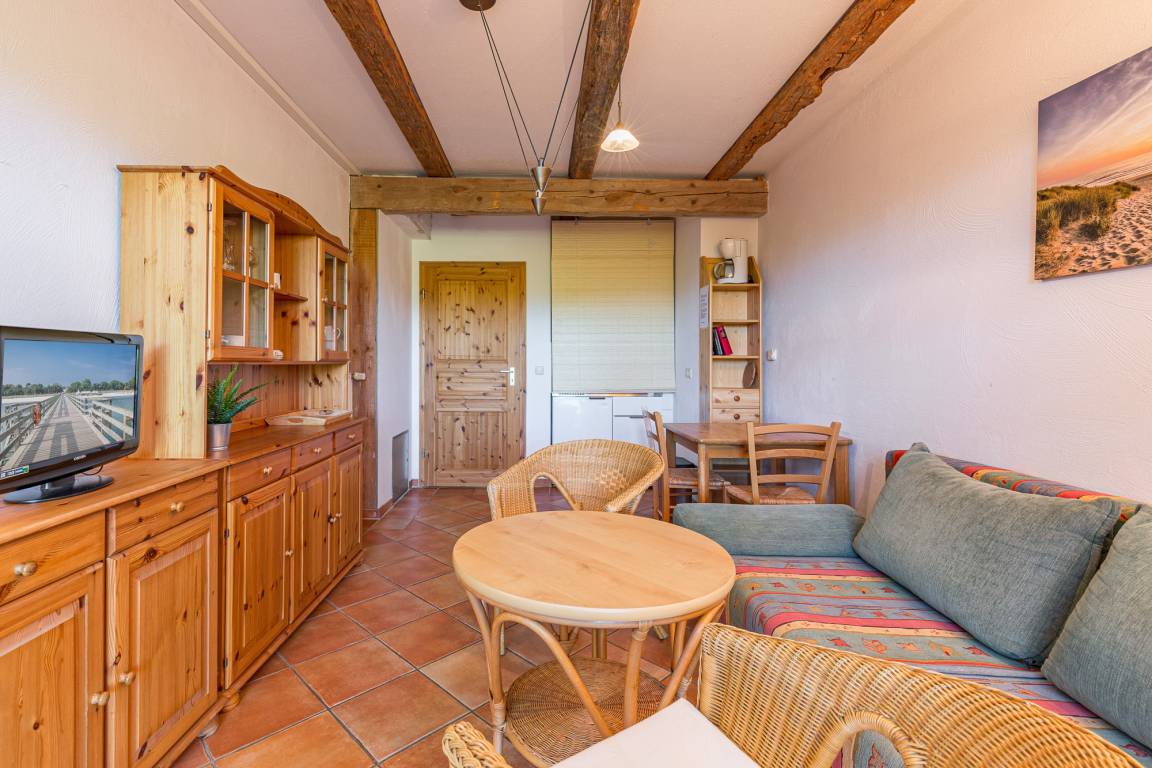 Über einen separaten Eingang gelangt man in die Wohnung 2 im Tarnewitzer Kamp. Die Wohnung ist mit einer Größe von 33 m² geeignet für 1 Person. In einer mit kombiniertem Wohn- und Schlafraum gestalteten Ferienwohnung befindet sich eine Doppelschlafcouch und für die Unterhaltung steht ein Fernseher mit Satelliten-Anschluss und ein Radio zur Verfügung.
