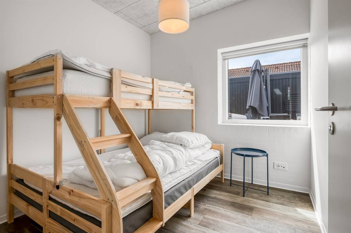 Es gibt drei Schlafzimmer mit Platz für bis zu sieben Personen. Zwei der Zimmer haben Doppelbetten, und das dritte verfügt über ein 140 cm breites Bett mit einem Hochbett darüber – perfekt für Kinder oder Teenager. Auch dein Hund ist herzlich willkommen, und mit Strand und Wanderwegen in der Umgebung gibt es viel zu entdecken – für Mensch und Hundeschnauze.