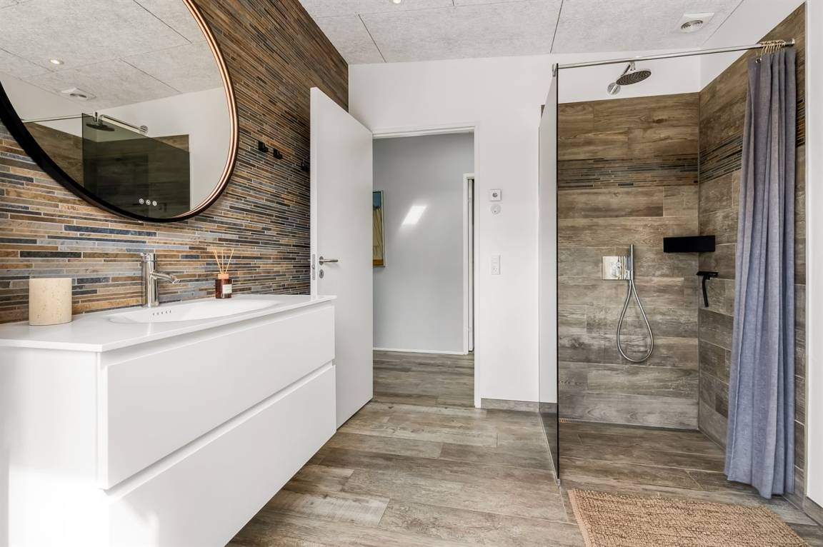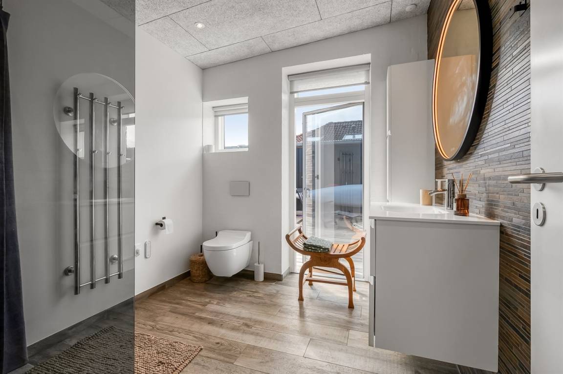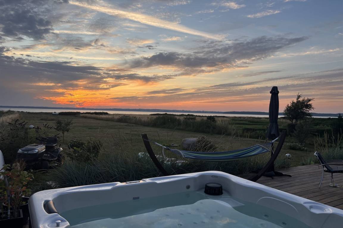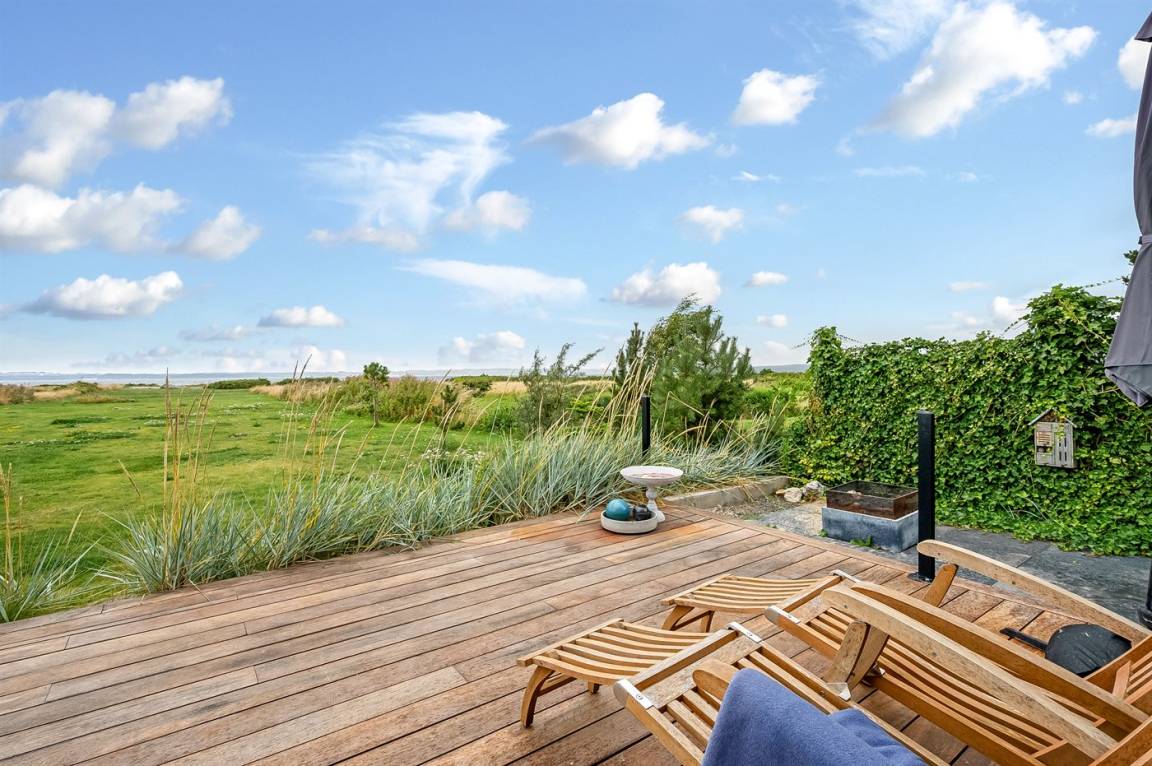 Das Haus wurde 2021 gebaut und liegt am Ende einer kleinen, ruhigen Straße ohne Verkehr – auf einem Grundstück, das direkt an den Strand angrenzt und ganz nah an der Natur. Die große Holzterrasse führt einmal rund ums Haus, sodass du immer ein schönes Plätzchen in der Sonne, im Windschutz oder im Schatten unter dem Sonnenschirm findest. Hier kannst du den Tag perfekt mit einem Kaffee in der Morgensonne beginnen und mit einem Abendessen bei Sonnenuntergang über der Bucht ausklingen lassen. Es besteht auch die Möglichkeit, im Outdoor-Whirlpool mit Standwasser und Platz für 6 Personen zu entspannen.