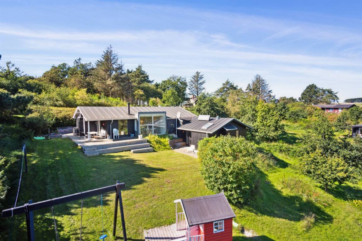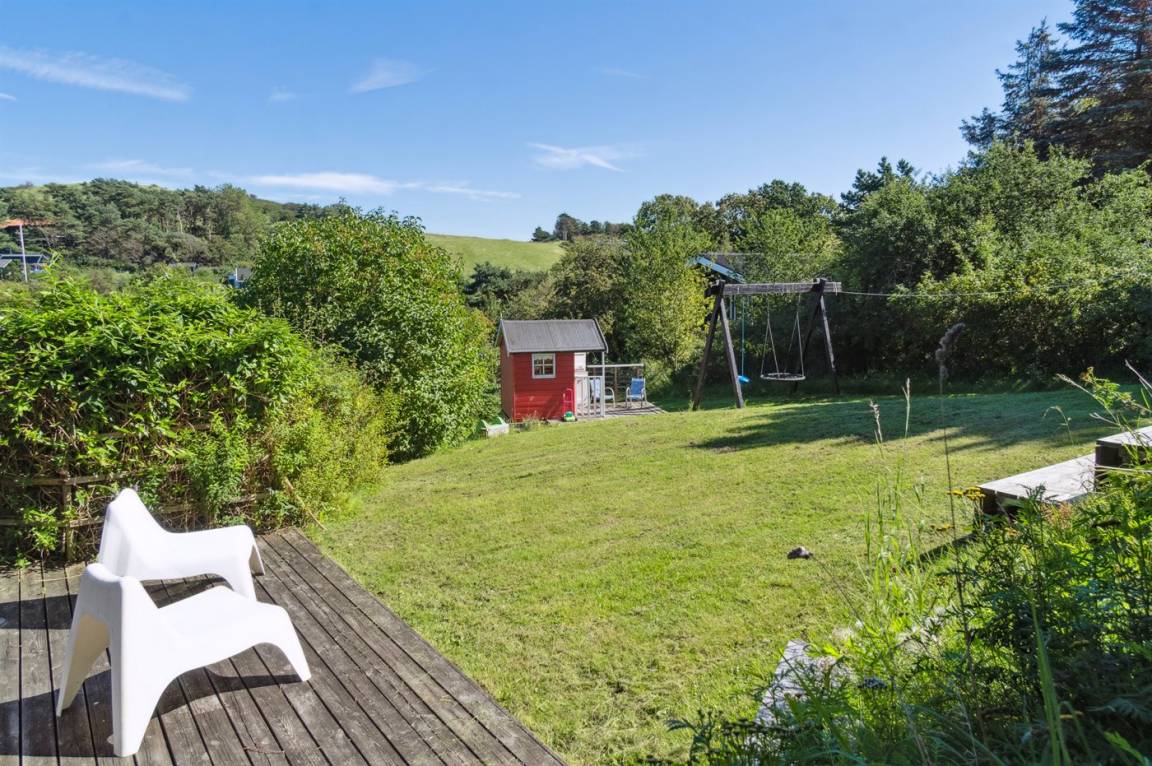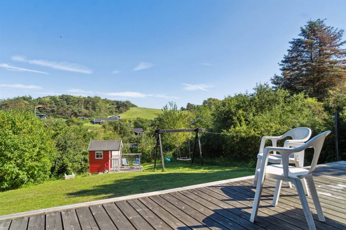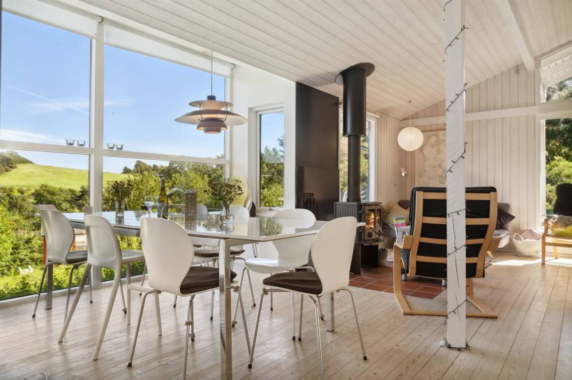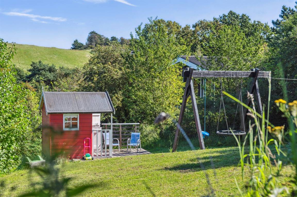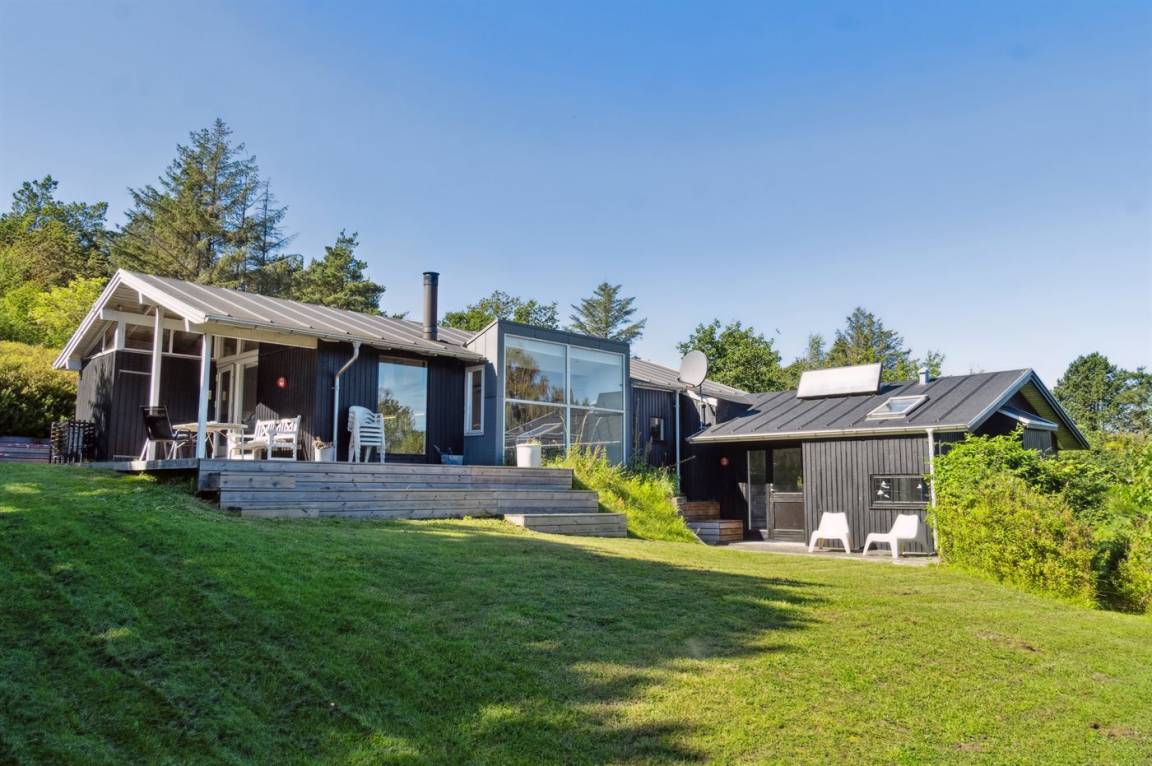 Schönes und gepflegtes Ferienhaus in malerischer und ruhiger Umgebung auf Helgenæs, das sich an der Spitze des schönen Djurslands befindet. Das Ferienhaus liegt auf dem hügeligen Gelände und bietet einen herrlichen Blick auf die Umgebung und die umliegenden Ferienhäuser. Von den Terrassenbereichen, die teilweise überdacht sind, kann die Sonne und die Aussicht besonders genossen werden. Das große und schöne Grundstück bietet ausgezeichnete Spielgelegenheiten für Kinder.