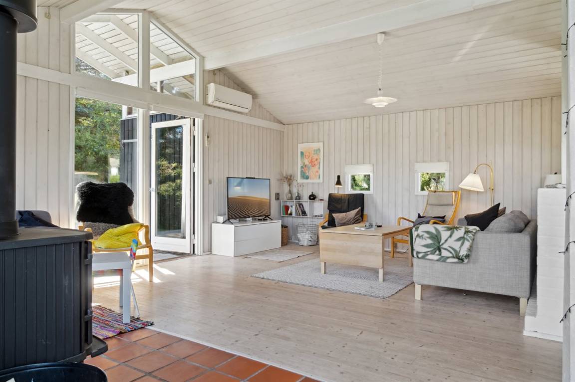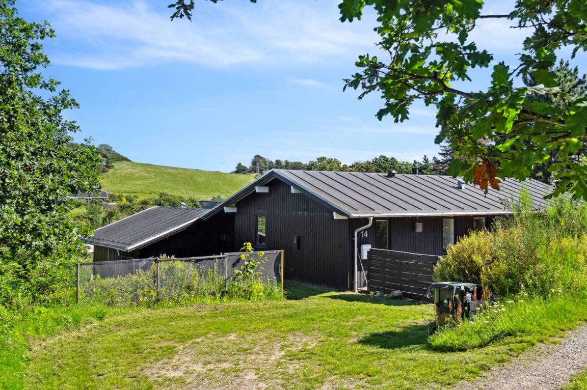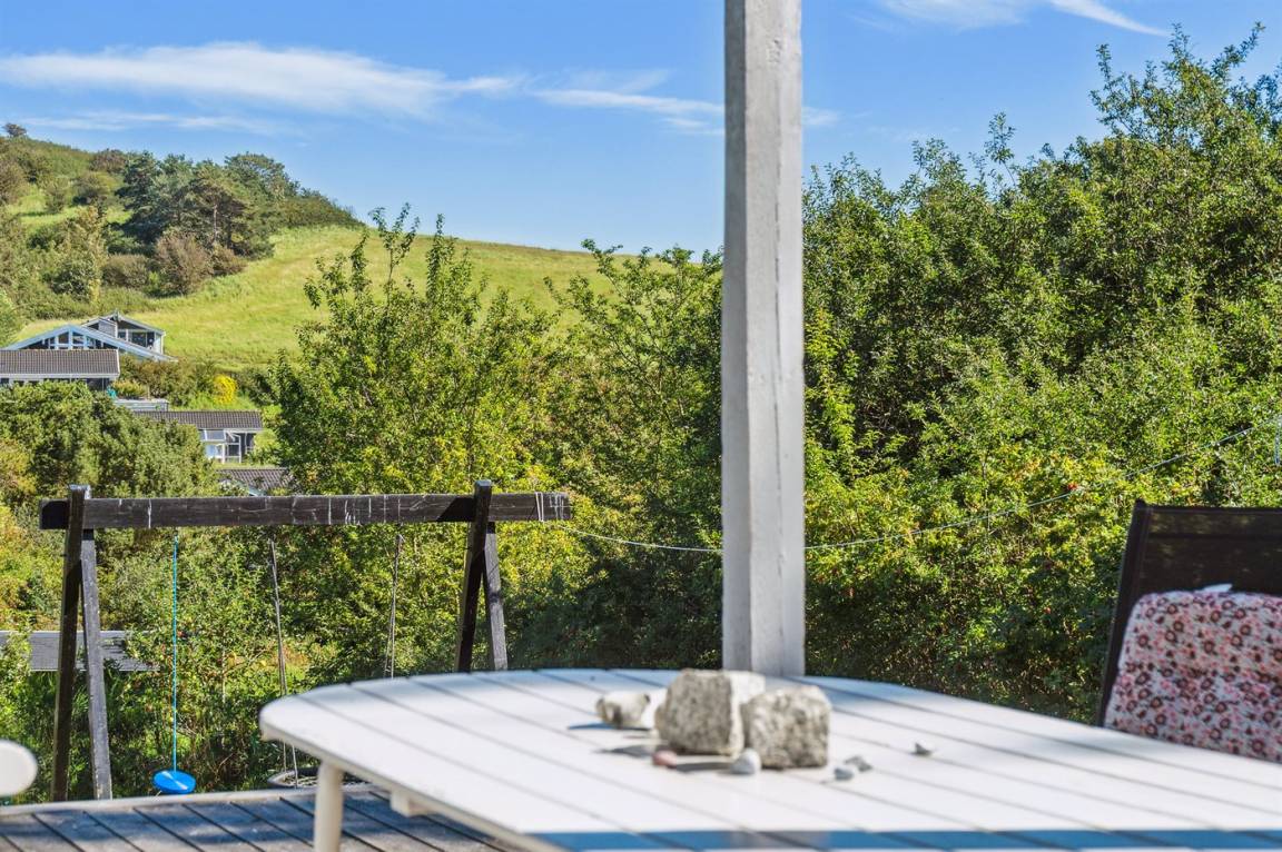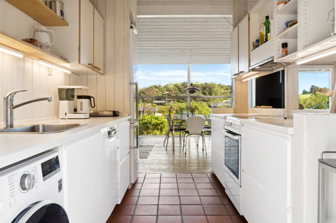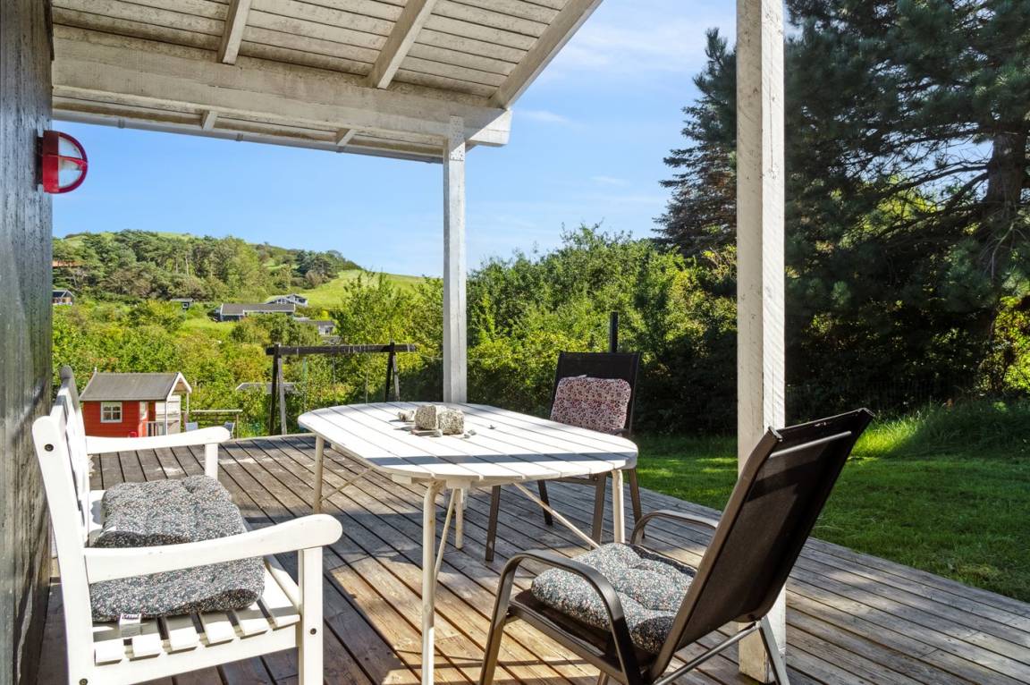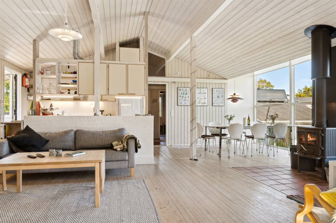 Schönes und gepflegtes Ferienhaus in malerischer und ruhiger Umgebung auf Helgenæs, das sich an der Spitze des schönen Djurslands befindet. Das Ferienhaus liegt auf dem hügeligen Gelände und bietet einen herrlichen Blick auf die Umgebung und die umliegenden Ferienhäuser. Von den Terrassenbereichen, die teilweise überdacht sind, kann die Sonne und die Aussicht besonders genossen werden. Das große und schöne Grundstück bietet ausgezeichnete Spielgelegenheiten für Kinder.