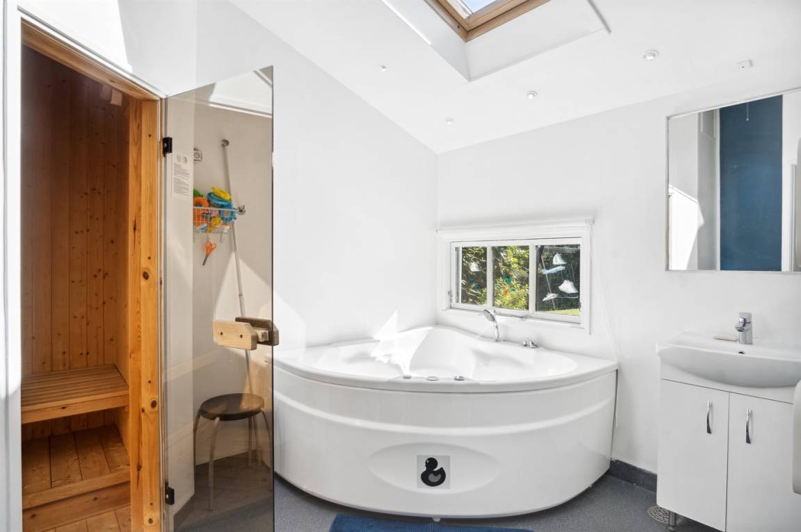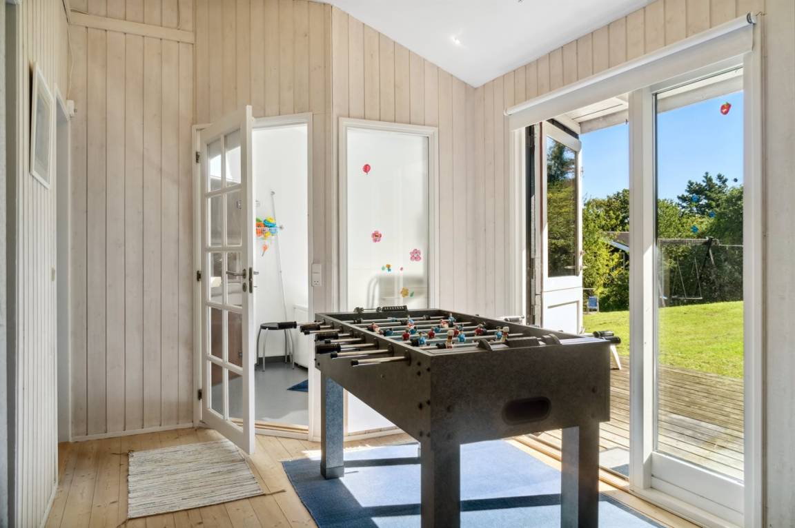 Im Inneren präsentiert sich das Haus hell und modern mit einer feinen Raumaufteilung, die gut für eine größere Familie geeignet ist. Auch von innen kann die herrlichen Aussicht genossen werden, da es große Glasfronten gibt, die die Natur wirklich hereinlassen. Sollte das Sommerwetter einmal nicht so gut sein, verfügt das Ferienhaus über einen schönen Whirlpool und einen kleinen Aktivitätsraum mit der Möglichkeit, Tischfußball zu spielen. Hier gibt es also gute Aktivitäten für Kinder jeden Alters.