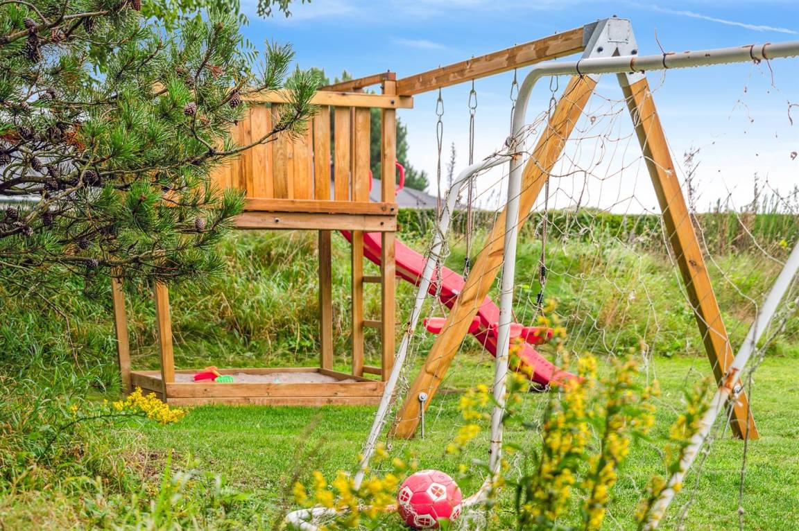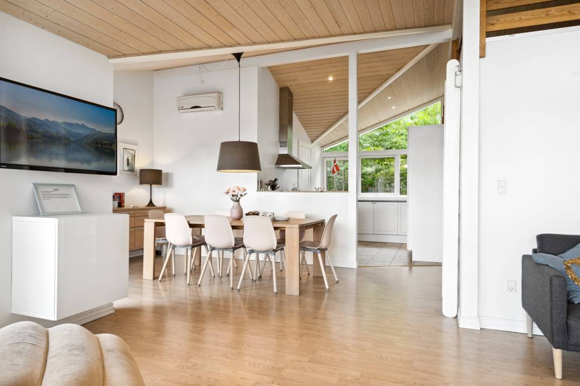 Schönes, gepflegtes Ferienhaus in einer ruhigen und landschaftlich ansprechenden Umgebung, nur ca. 300 m vom Wasser entfernt. Das Ferienhaus wurde 2012 erbaut und ist hell und modern. Das Haus eignet sich dank seiner Ausstattung besonders gut für z. B. zwei Familien, die gemeinsam Urlaub machen möchten, oder ein Paar mit Hund. Hier ist viel Platz zum Toben und Spielen. Im großen Badezimmer gibt es einen herrlichen Whirlpool.