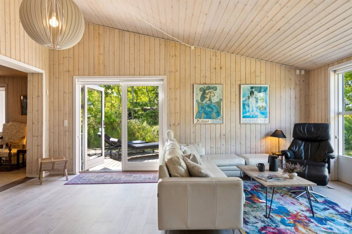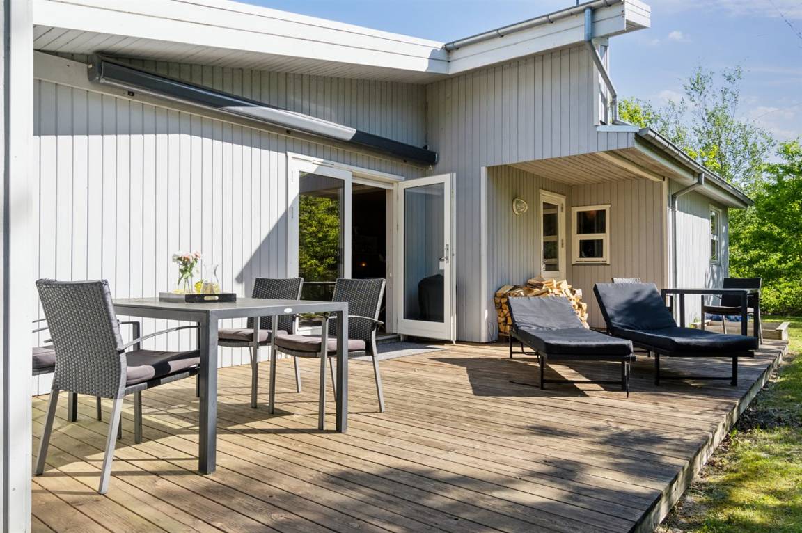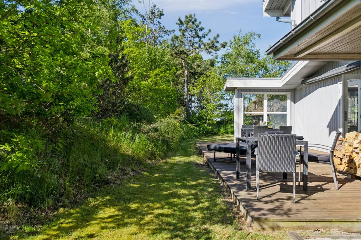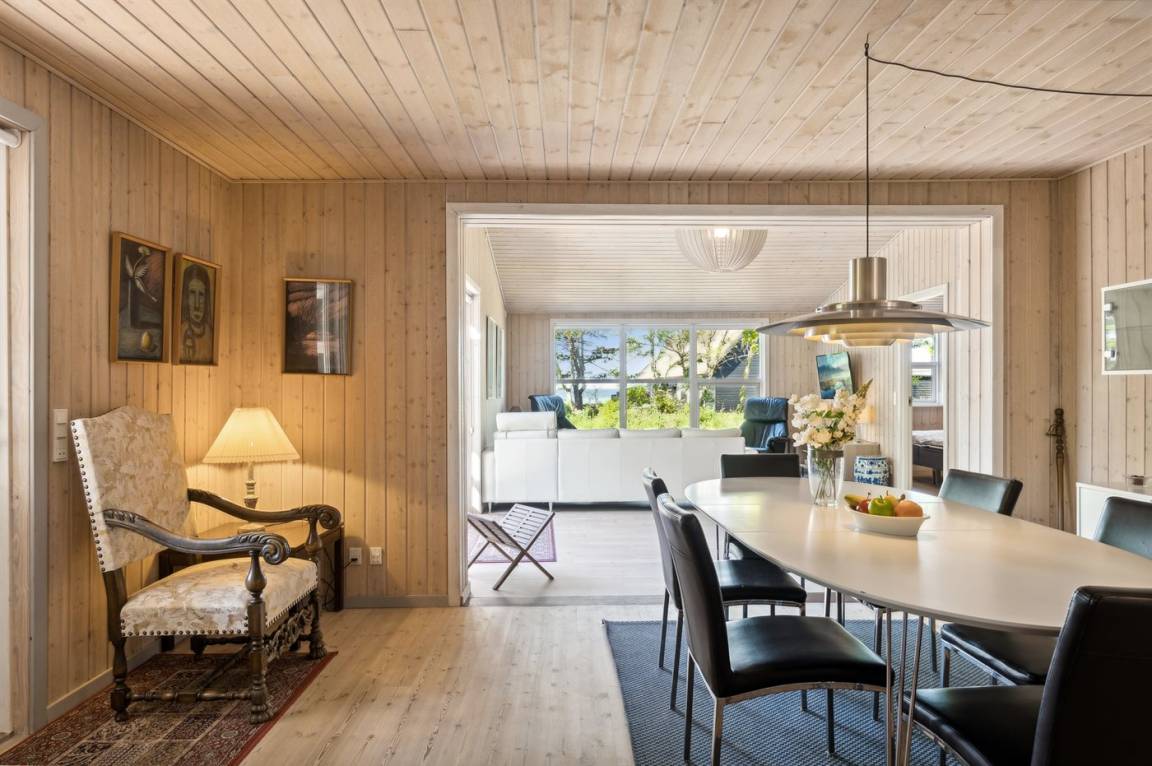 Ein schönes und geräumiges Ferienhaus, 2009 völlig renoviert, auf einem ungestörten Naturgrundstück dicht am Strand gelegen. Vom Haus und vom Grundstück aus kannst du das Wasser sehen.