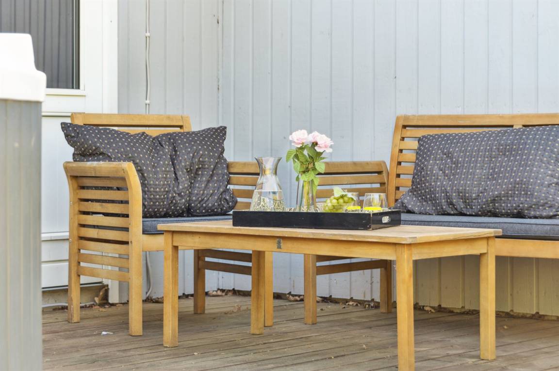 Zum Haus gehören gute Terrassen mit Gartenmöbeln sowie eine Außendusche.