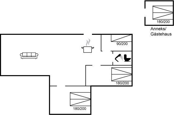SchlafverhältnisseDie Schlafplätze verteilen sich auf 4 Schlafräume. 6 Schlafplätze in Doppelbetten.1 Schlafplatz in einem Einzelbett. 2 von diesen Schlafplätzen befinden sich im Gästehaus.