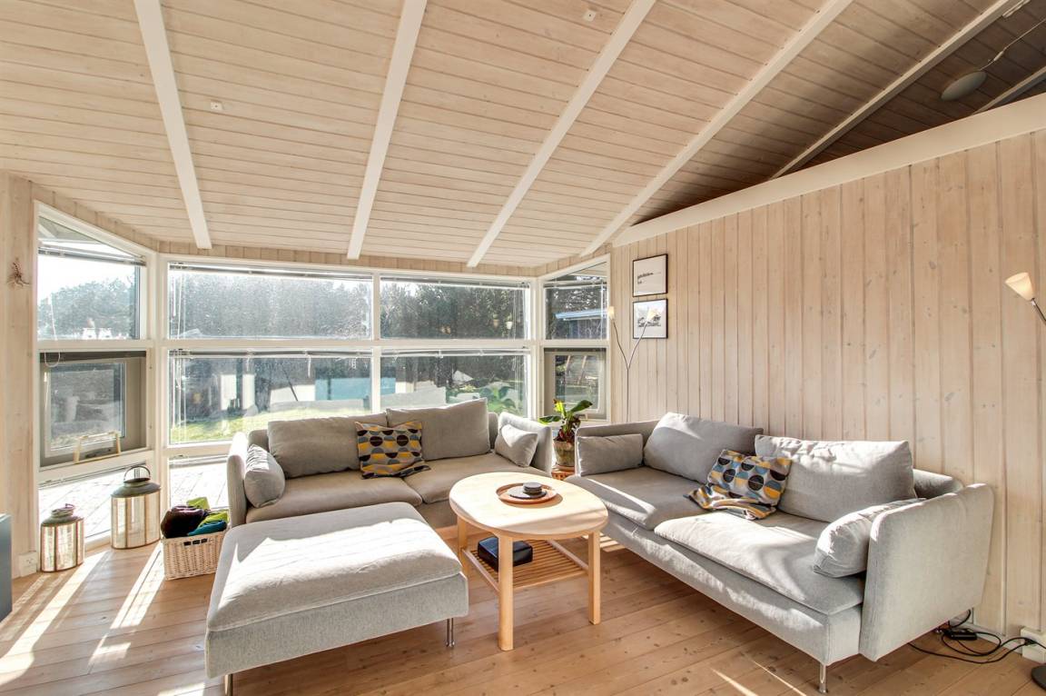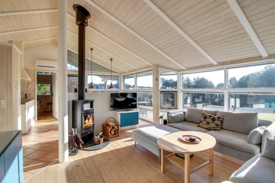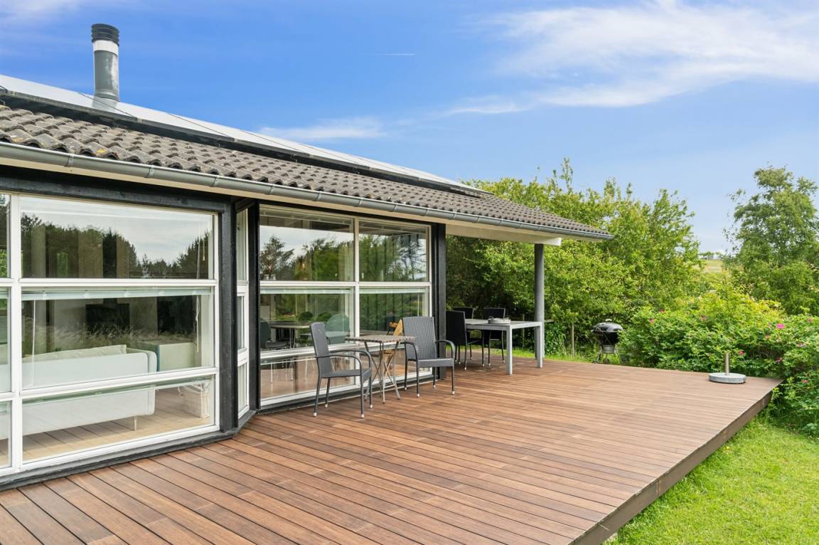 Dieses hoch gelegene Ferienhaus mit einer phantatischen Aussicht über die leicht hügelige Landschaft liegt auf einem großen Grundstück in ruhiger und naturschöner Umgebung, nah am Wasser und dem Leuchtturm "Sletterhage Fyr".