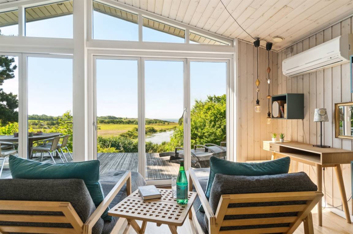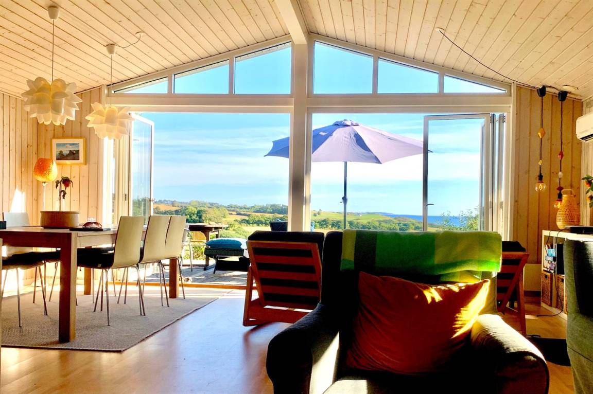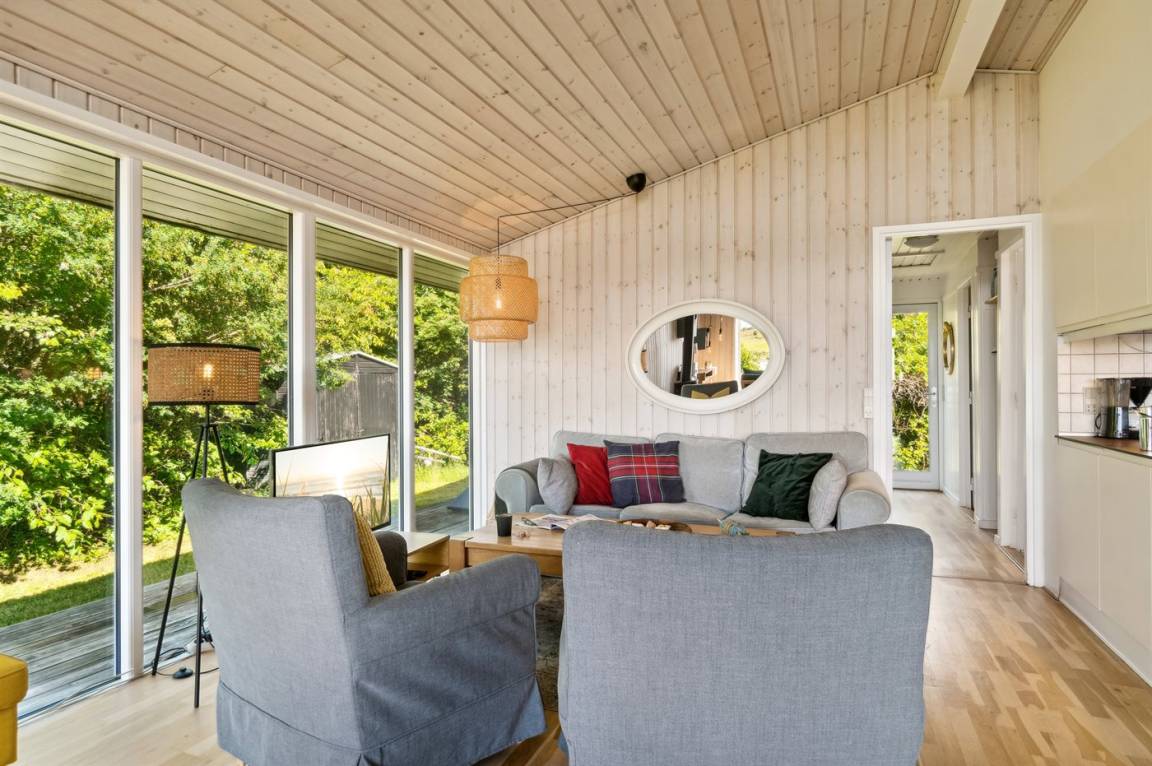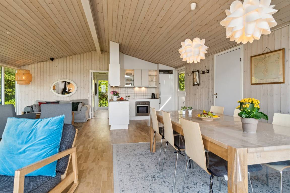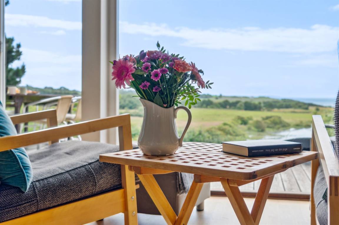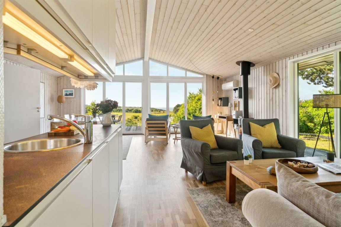 Das Ferienhaus ist gut eingerichtet und hat einen feinen Grundriss, der sich zum Beispiel für eine Familie mit Kindern oder eine kleinere Familie mit Großeltern eignet. Es besteht auch die Möglichkeit, bis zu zwei Haustiere mitzubringen, so dass die Rahmenbedingungen für einen schönen Urlaub ideal sind. Der Mittelpunkt des Hauses ist das schöne und helle Wohnzimmer mit Aussicht auf das Meer, und es gibt direkten Zugang von dort zur Terrasse.