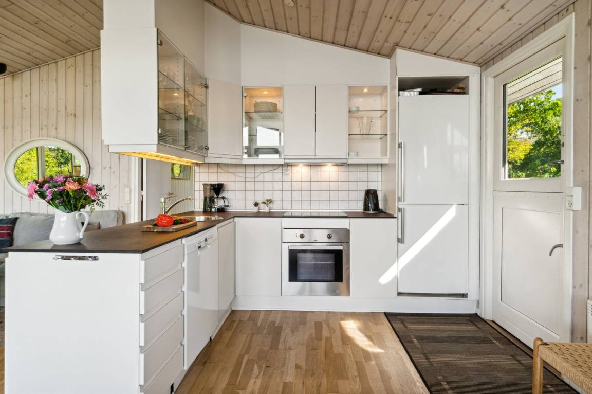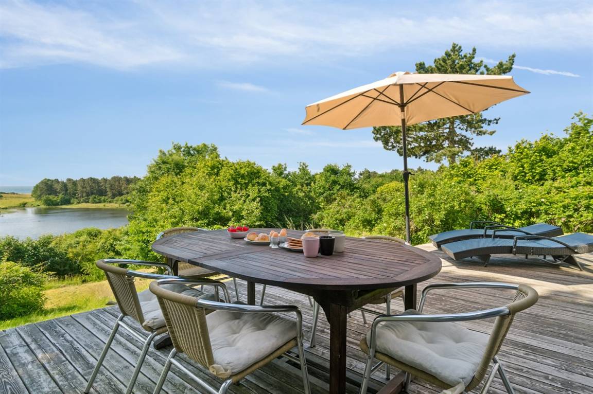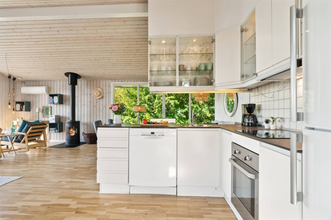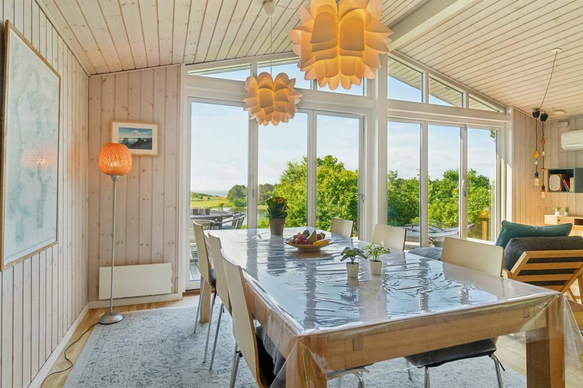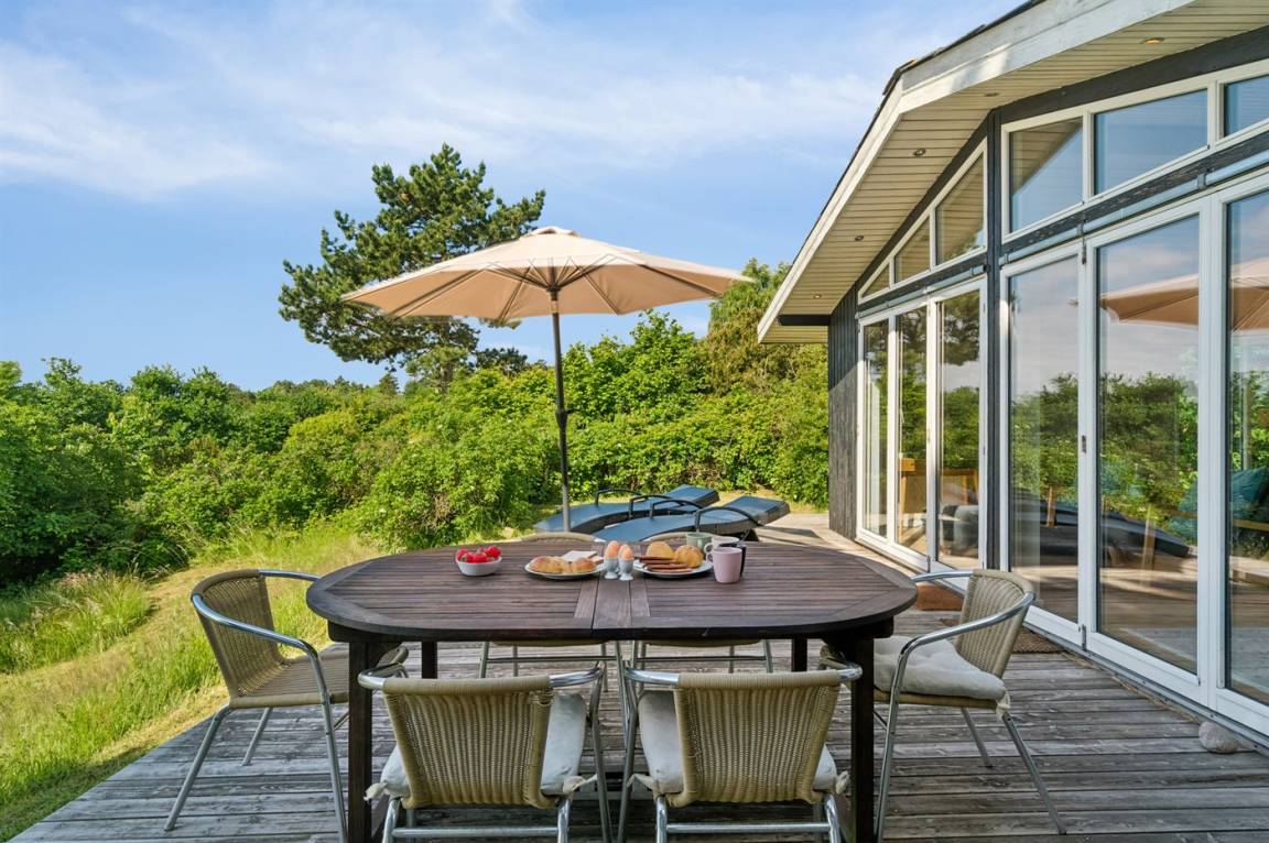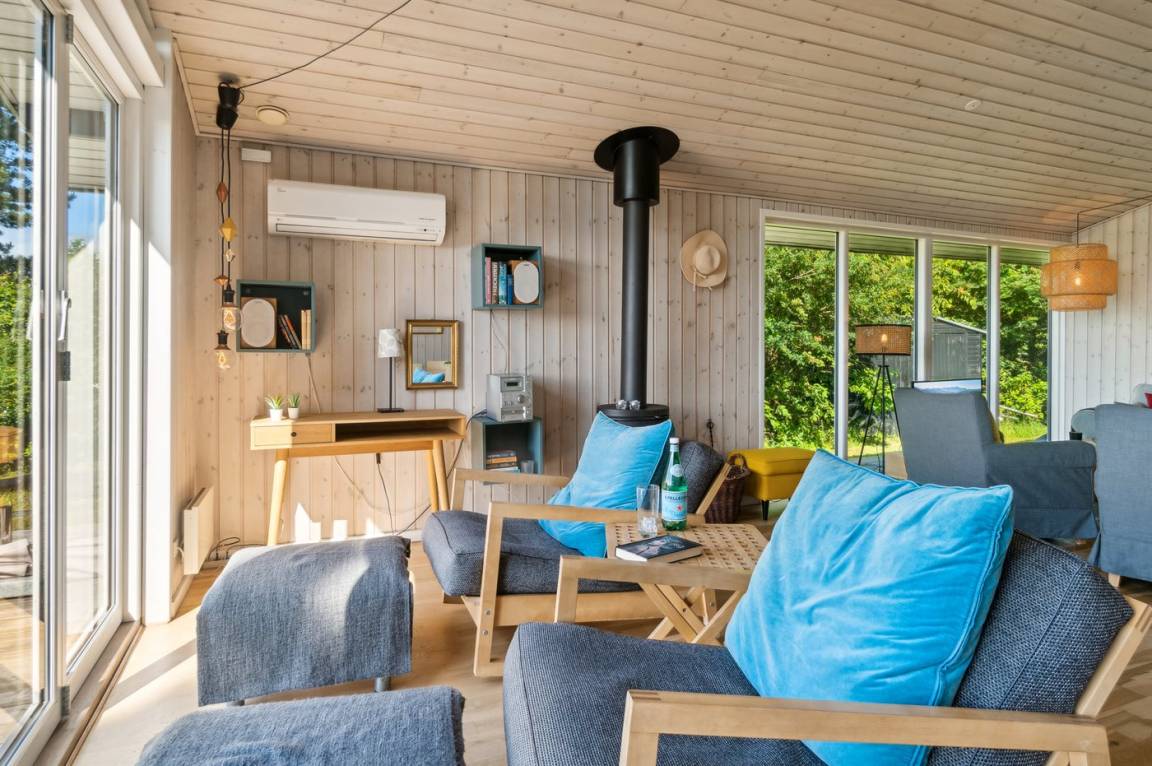 Das Ferienhaus ist gut eingerichtet und hat einen feinen Grundriss, der sich zum Beispiel für eine Familie mit Kindern oder eine kleinere Familie mit Großeltern eignet. Es besteht auch die Möglichkeit, bis zu zwei Haustiere mitzubringen, so dass die Rahmenbedingungen für einen schönen Urlaub ideal sind. Der Mittelpunkt des Hauses ist das schöne und helle Wohnzimmer mit Aussicht auf das Meer, und es gibt direkten Zugang von dort zur Terrasse.