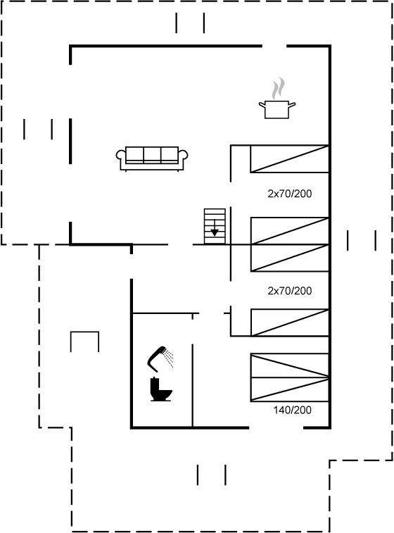 SchlafverhältnisseDie Schlafplätze verteilen sich auf 3 Schlafräume. 2 Schlafplätze in einem Doppelbett. 4 Schlafplätze in Einzelbetten.