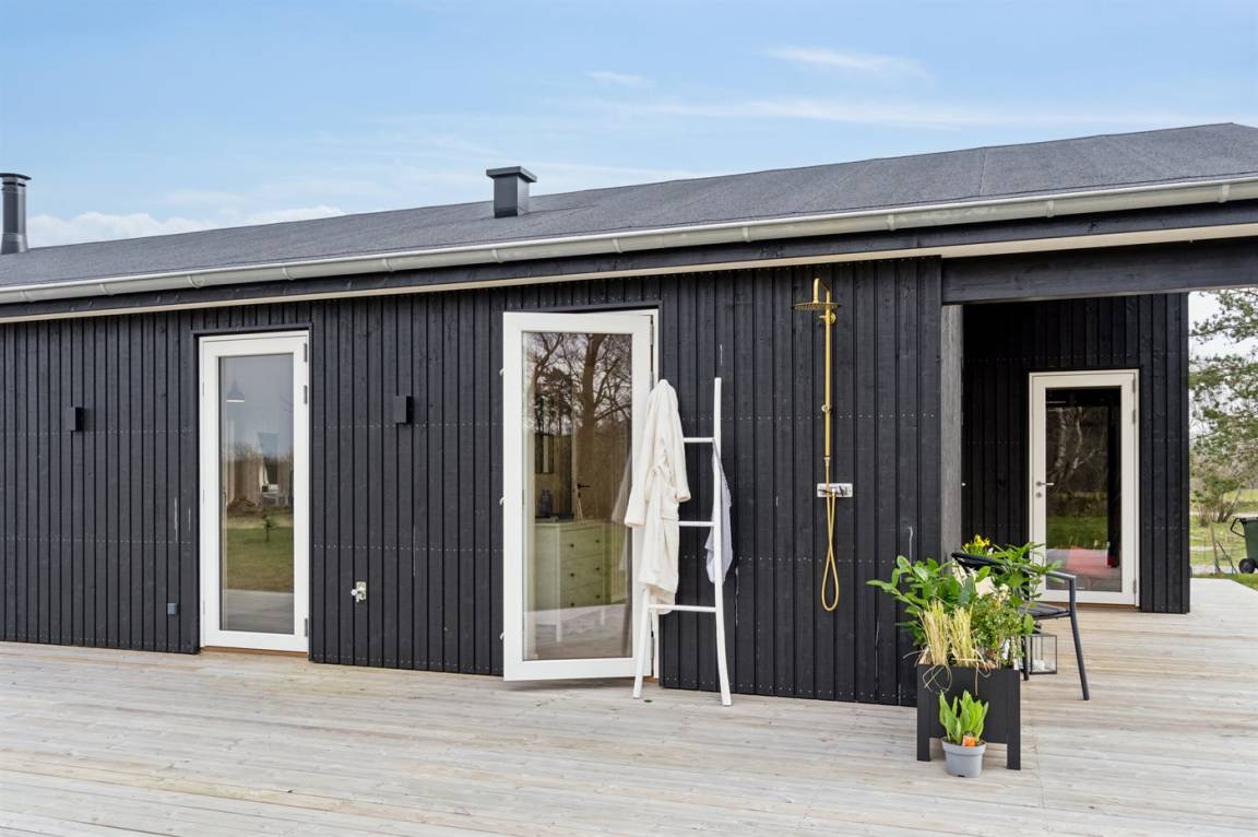 DraußenDie Ferienunterkunft liegt auf einem 1243 m² großen Gartengrundstück. Die Entfernung zum Meer beträgt 1450 m. Die nächste Einkaufsmöglichkeit liegt 500 m entfernt. Es steht ein offenes Terrassenareal zur Verfügung. Außerdem gibt es überdachte Terrasse.Lagerfeuerstelle. Außendusche. Es steht ein Grill zur Verfügung. Es ist ein Ladestecker für Elektroautos installiert. Parkplatz auf dem Grundstück.