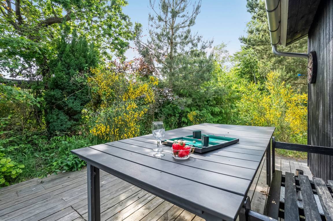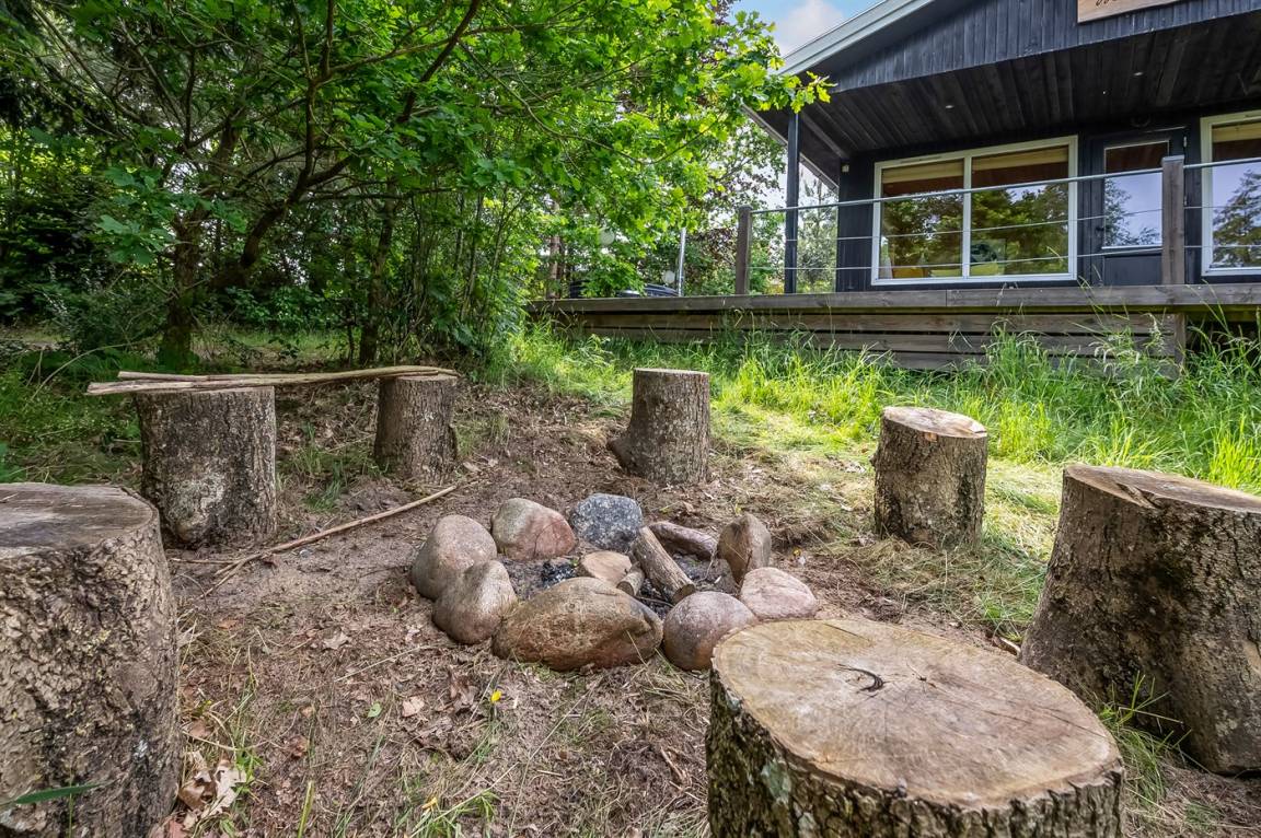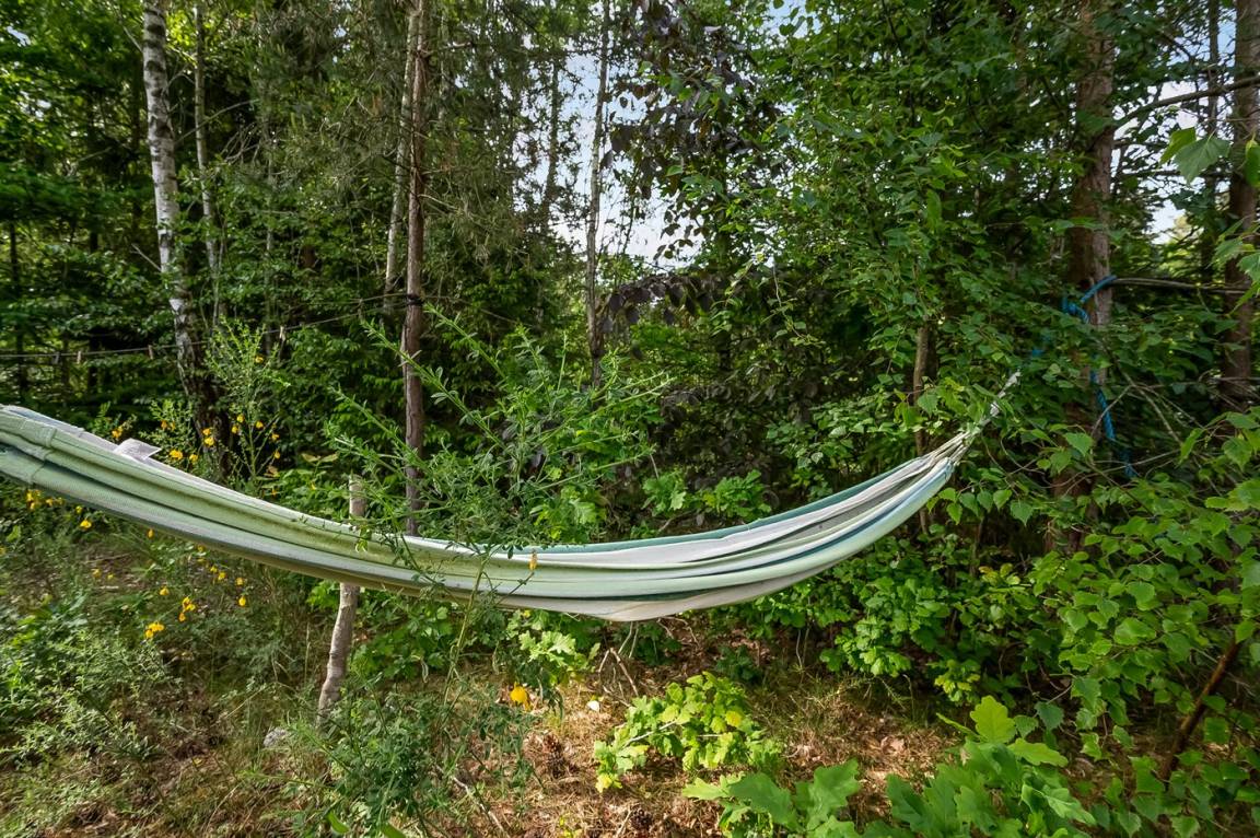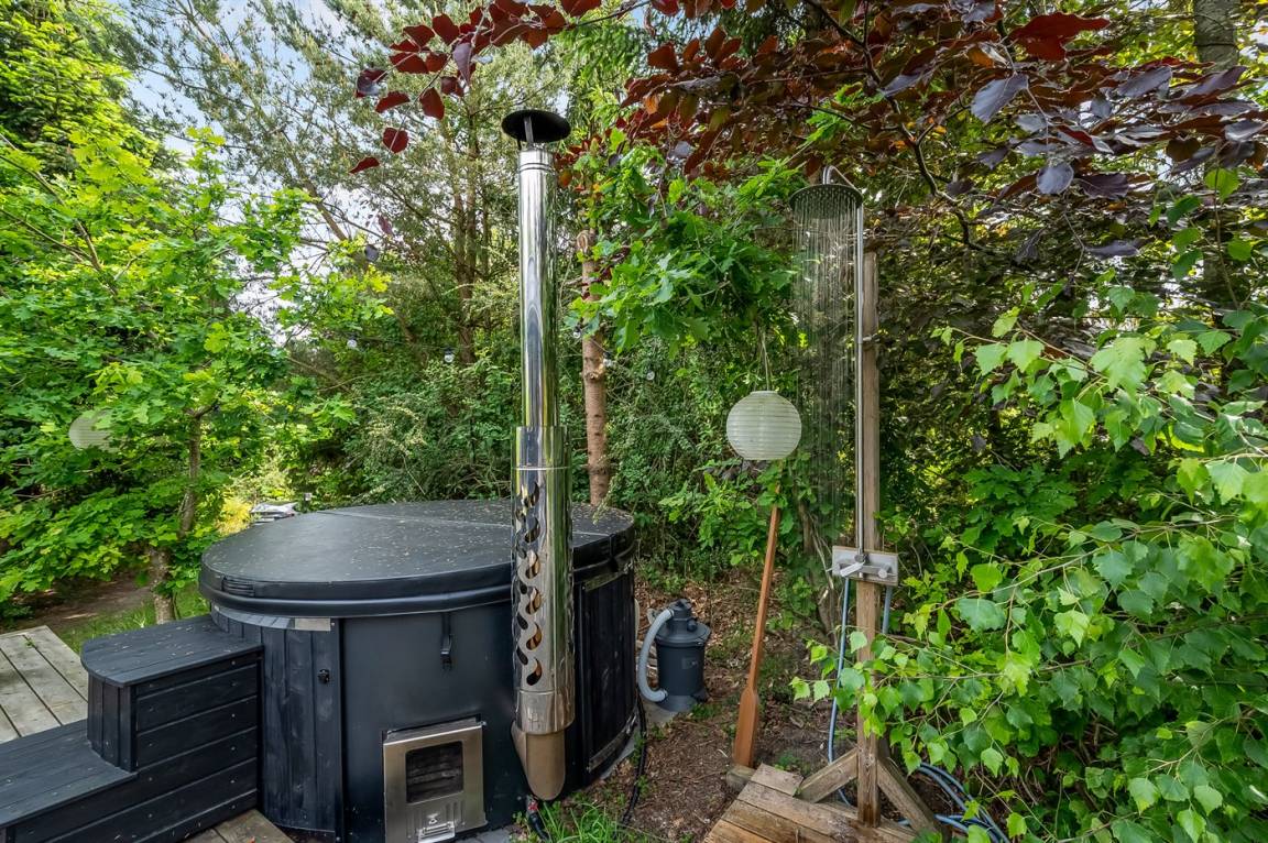 DraußenDie Ferienunterkunft liegt auf einem 2050 m² großen Naturgrundstück. Die Entfernung zum Meer beträgt 3000 m. Die nächste Einkaufsmöglichkeit liegt 2500 m entfernt. Es steht ein offenes Terrassenareal zur Verfügung. Außerdem gibt es überdachte Terrasse. Schaukel. Trampolin.Lagerfeuerstelle. Außendusche. Es steht ein Grill zur Verfügung. Parkplatz auf dem Grundstück.