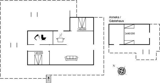 SchlafverhältnisseDie Schlafplätze verteilen sich auf 3 Schlafräume. 4 Schlafplätze in Doppelbetten. 2 Schlafplätze in Einzelbetten. 2 von diesen Schlafplätzen befinden sich im Gästehaus. Ferner steht ein Kinderbett zur Verfügung.