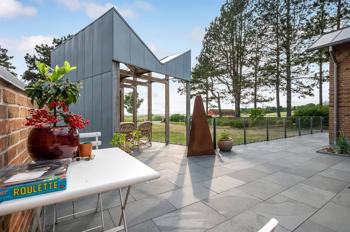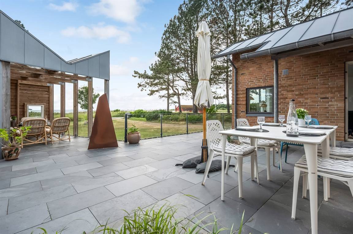Der Garten bietet viel Platz zum Spielen und Entspannen, und mit überdachten sowie offenen Terrassen findest du immer ein Plätzchen im Windschatten – oder in der Sonne, je nach Laune. Wenn der Tag zur Neige geht, lädt der Whirlpool mit warmen Blubberblasen zum Entspannen ein.