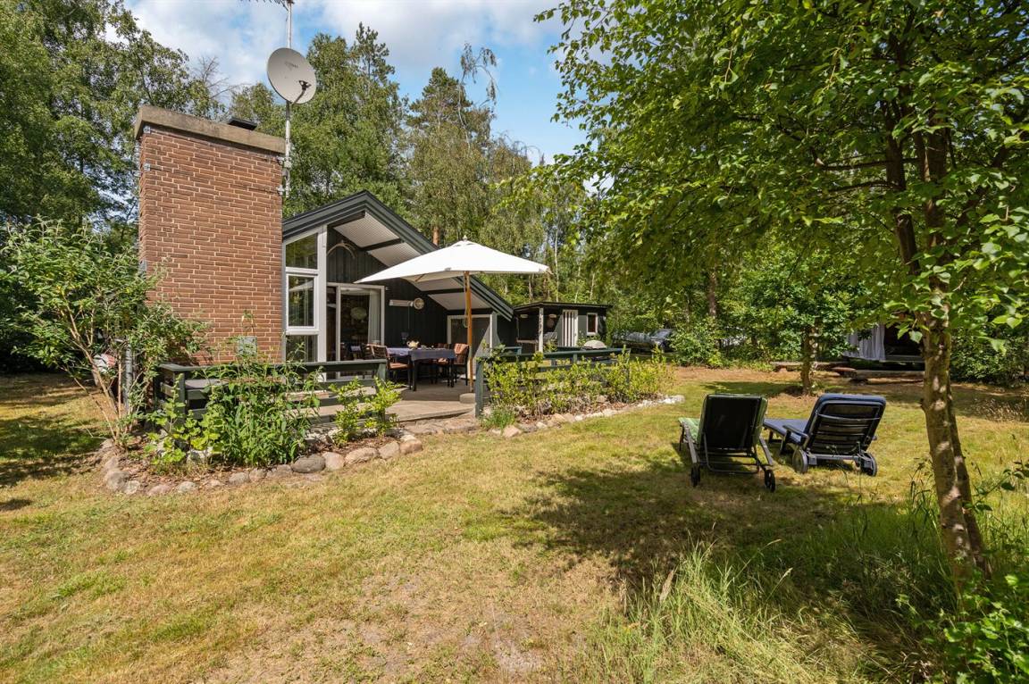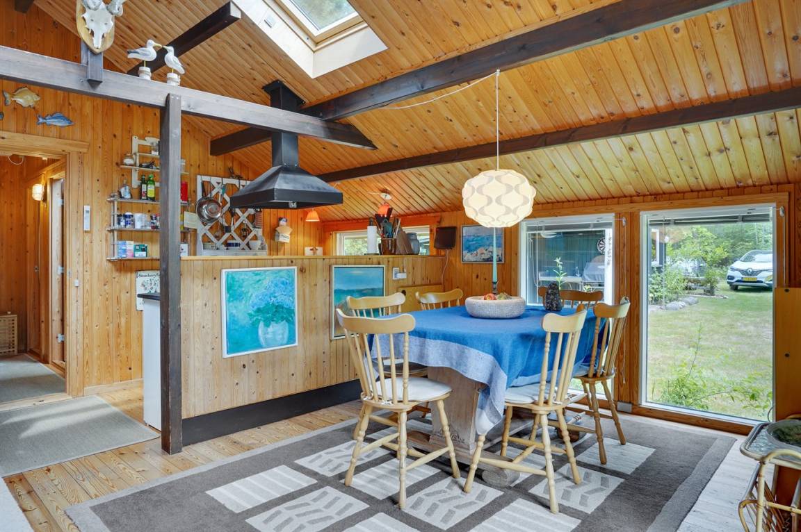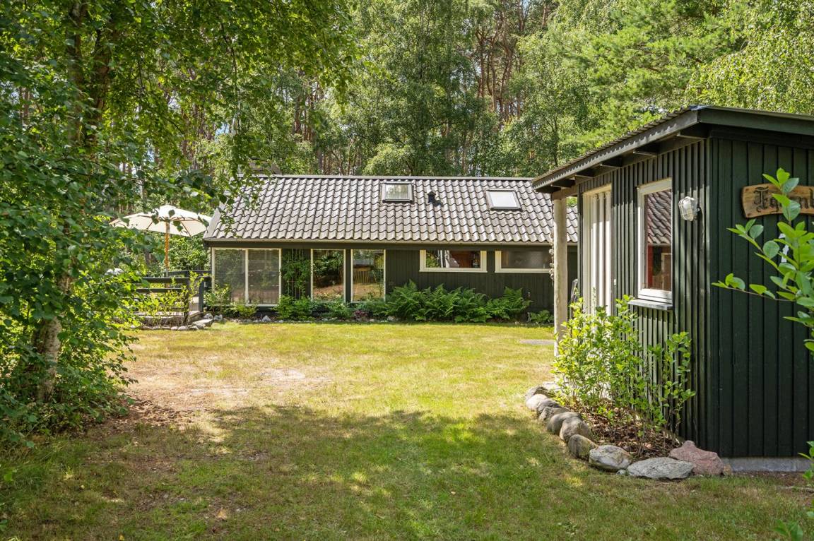 Gemütliches und charmantes Ferienhaus in einem schönen Urlaubsgebiet – nur etwa 200 m vom Wasser und vom hervorragenden und kinderfreundlichen Sandstrand entfernt. Vollkommen ungestörte Lage auf einem tollen Naturgrundstück, das von hohen Bäumen umgeben ist. Schöne überdachte Terrasse, von der aus man die Stille und die herrliche Umgebung genießen kann. Die Innenräume des Hauses sind – in Anbetracht ihres Alters – in einem guten Zustand und haben eine Raumaufteilung, die sich gut für eine Familie eignet.